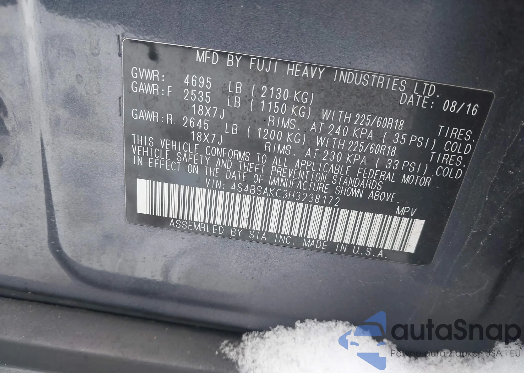 • VIN 4S4BSAKC3H3238172