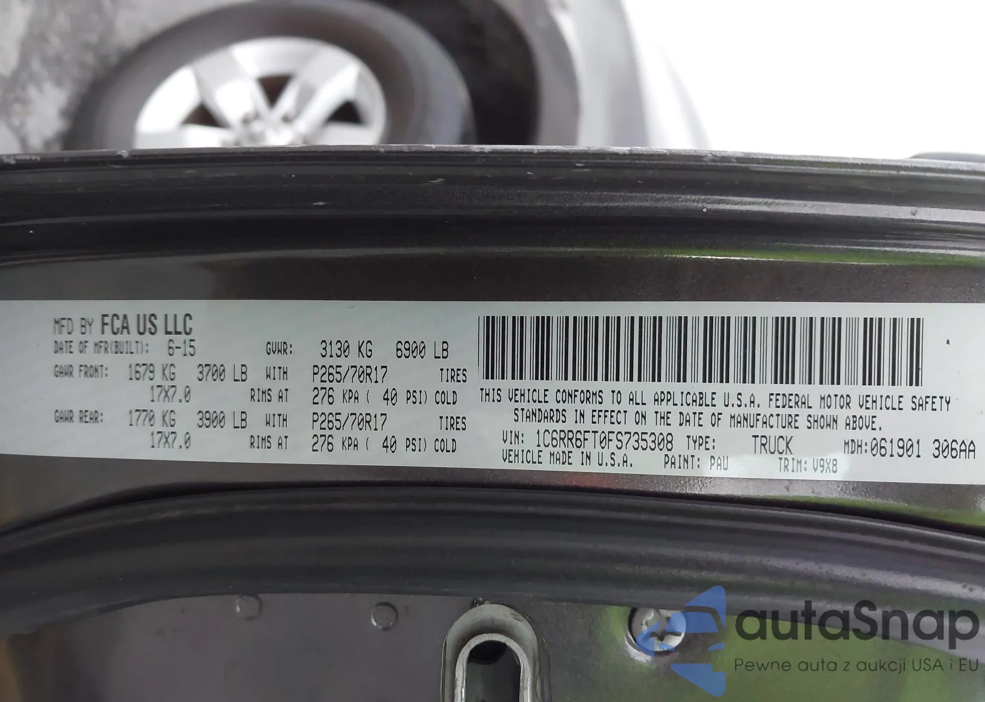 • VIN 1C6RR6FT0FS735308