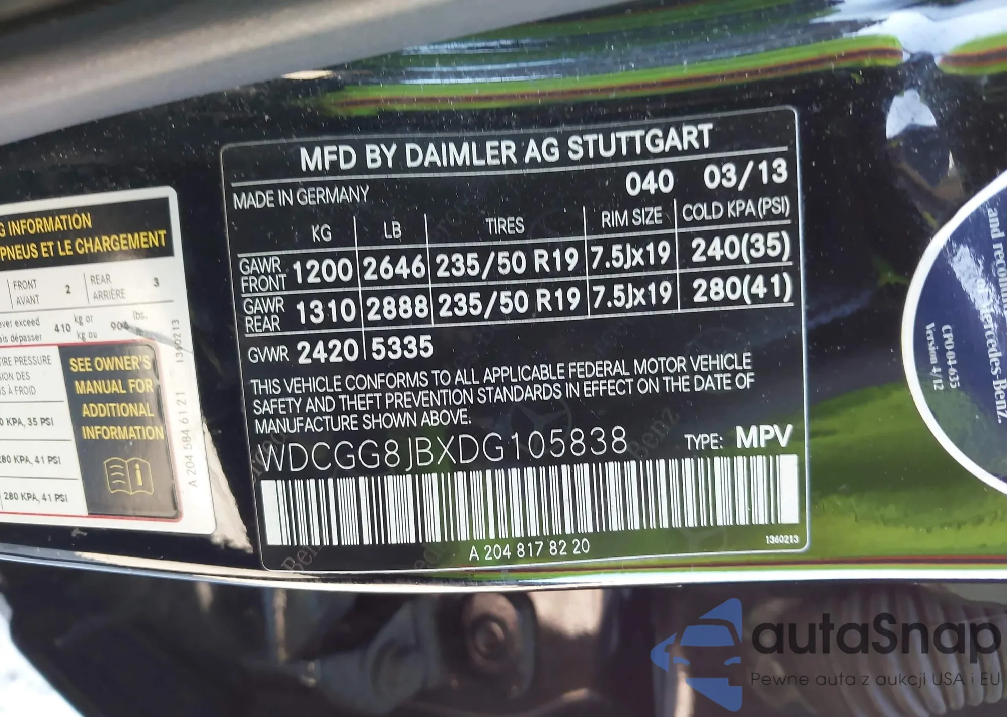 • VIN WDCGG8JBXDG105838