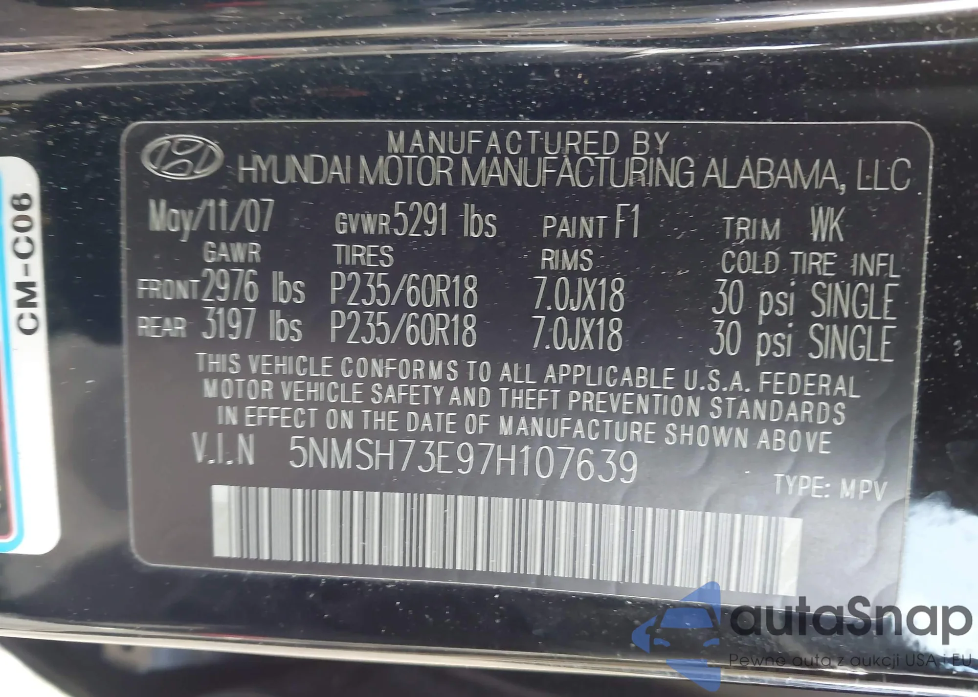 • VIN 5NMSH73E97H107639