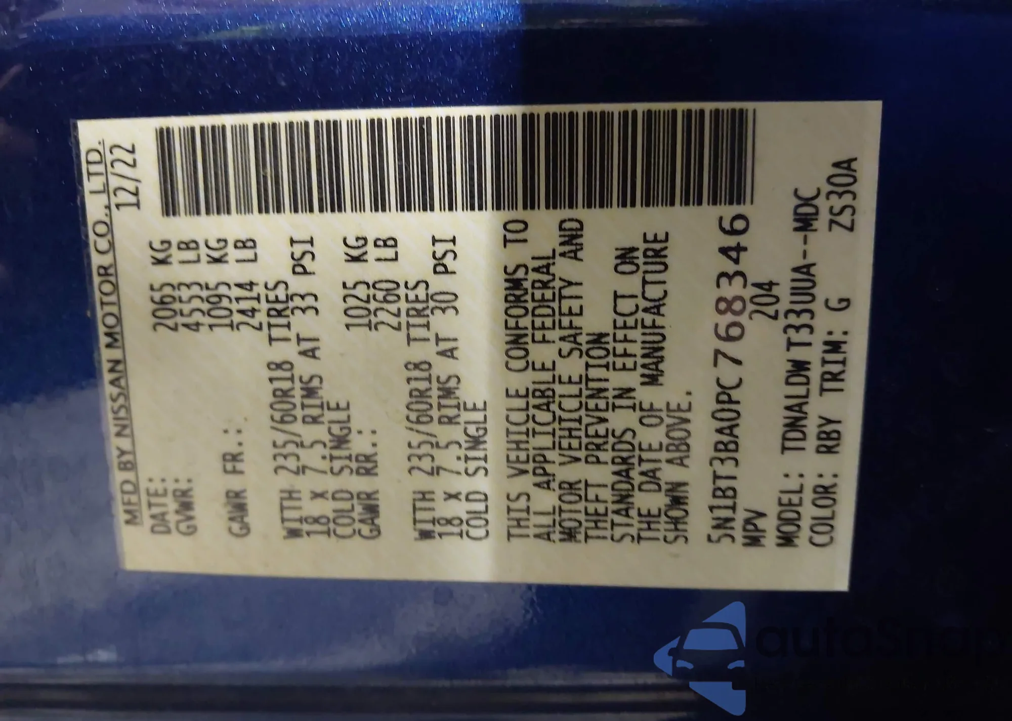 • VIN 5N1BT3BA0PC768346
