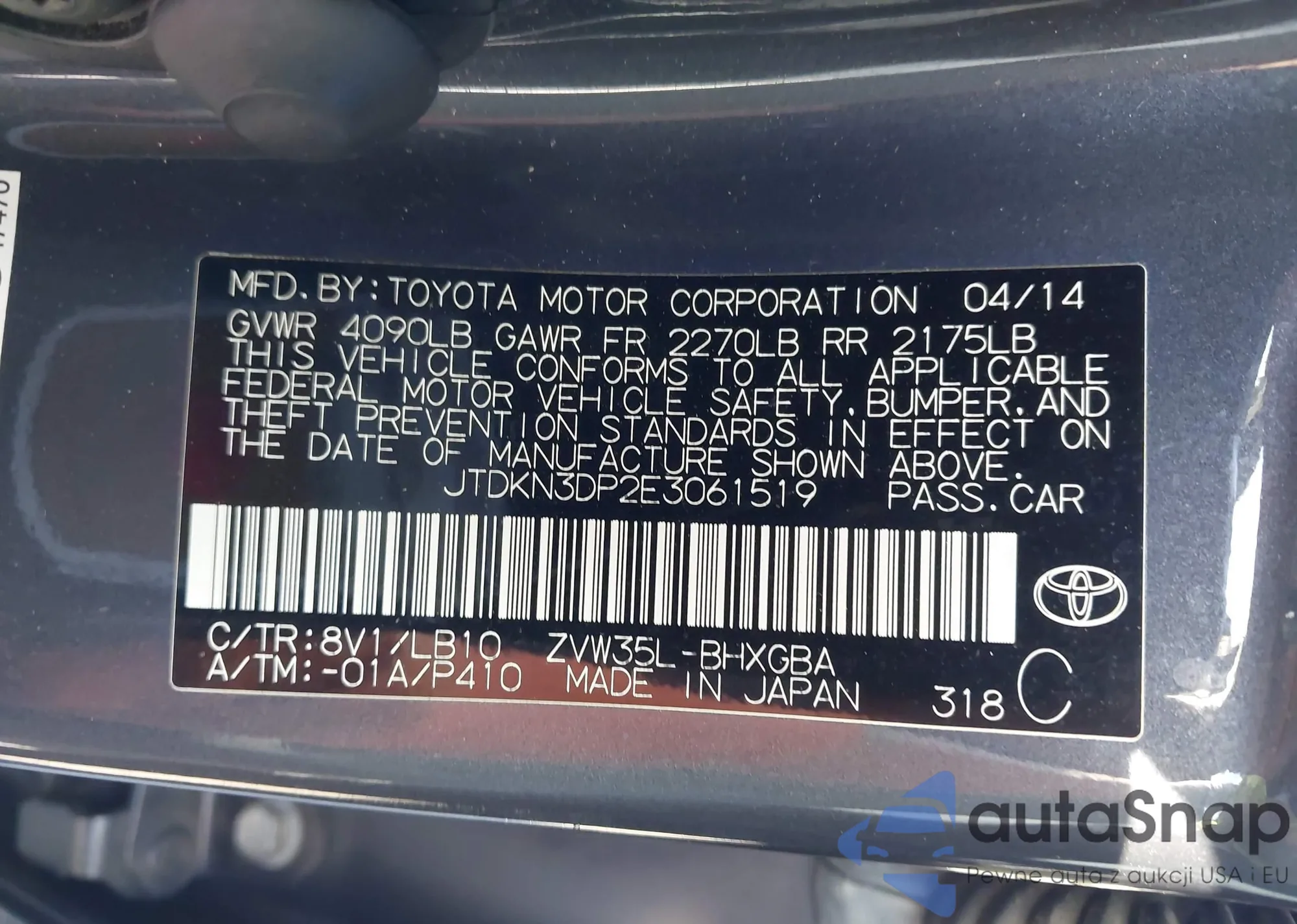 • VIN JTLZE4FE9A1106160