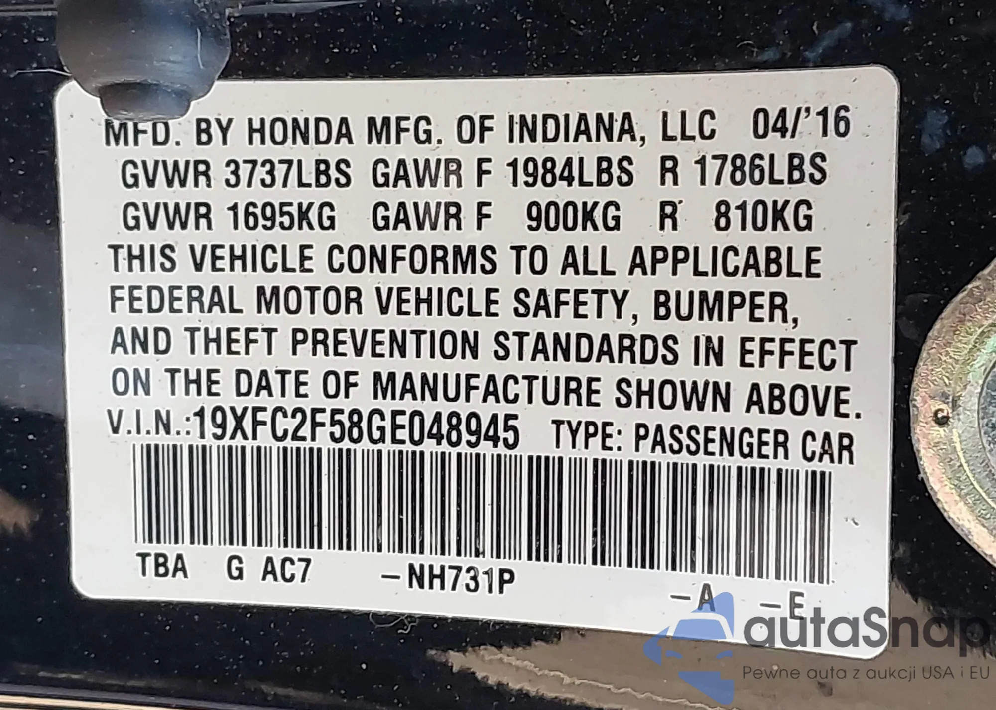 LOT: 44535216 VIN: WMZYT5C33J3E59507
