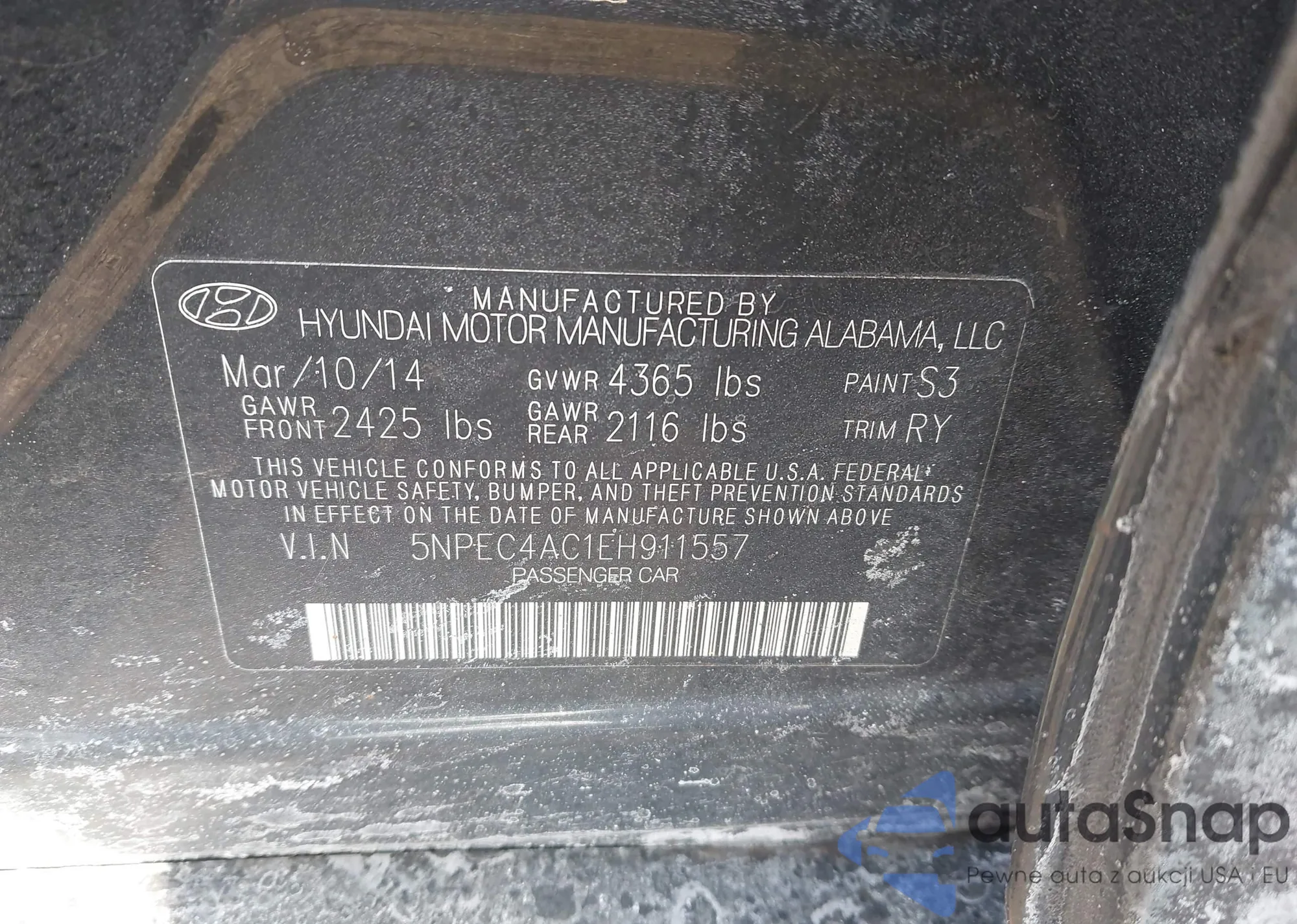 • VIN 5NPEC4AC1EH911557
