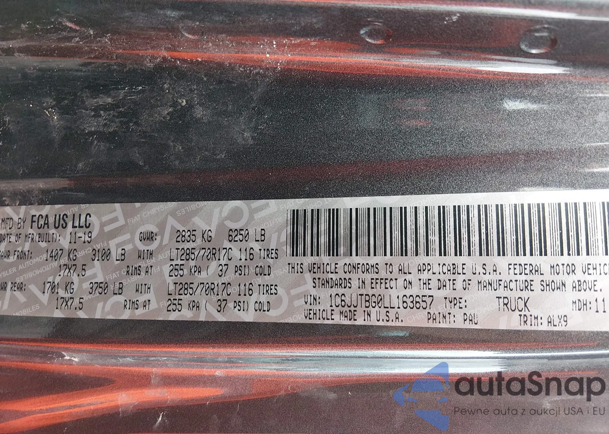 LOT: 44099577 VIN: 1C6RR6TT6JS168180