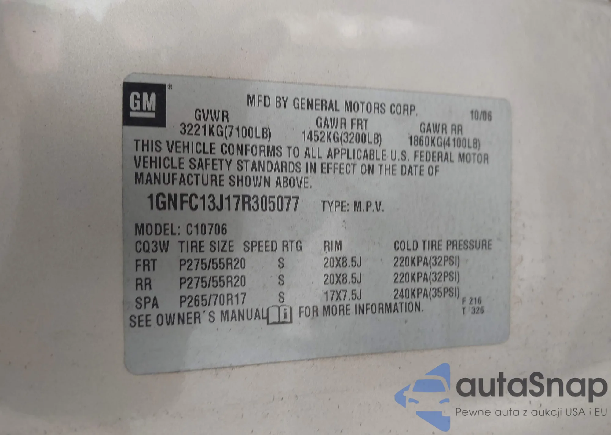 LOT: 43966347 VIN: 1GNFC13J17R305077