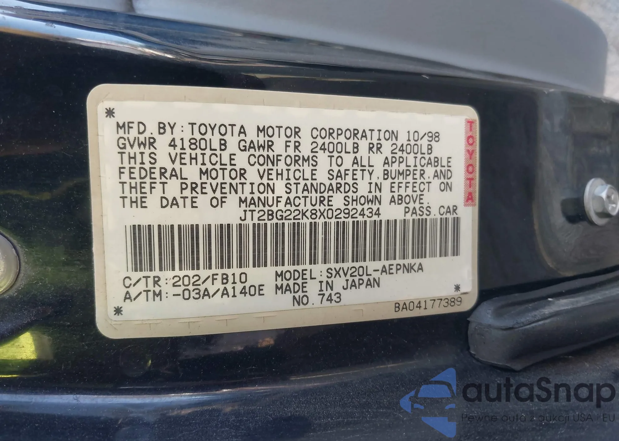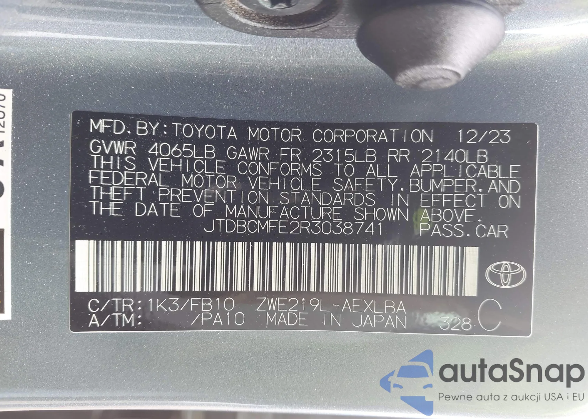 • VIN JTDBCMFE2R3038741