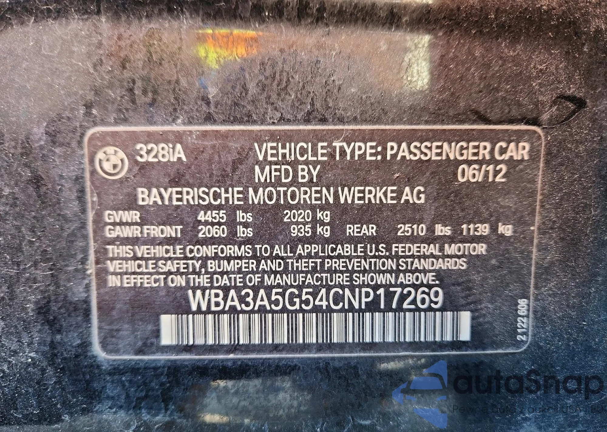 • VIN 4T1BF1FK2CU615163