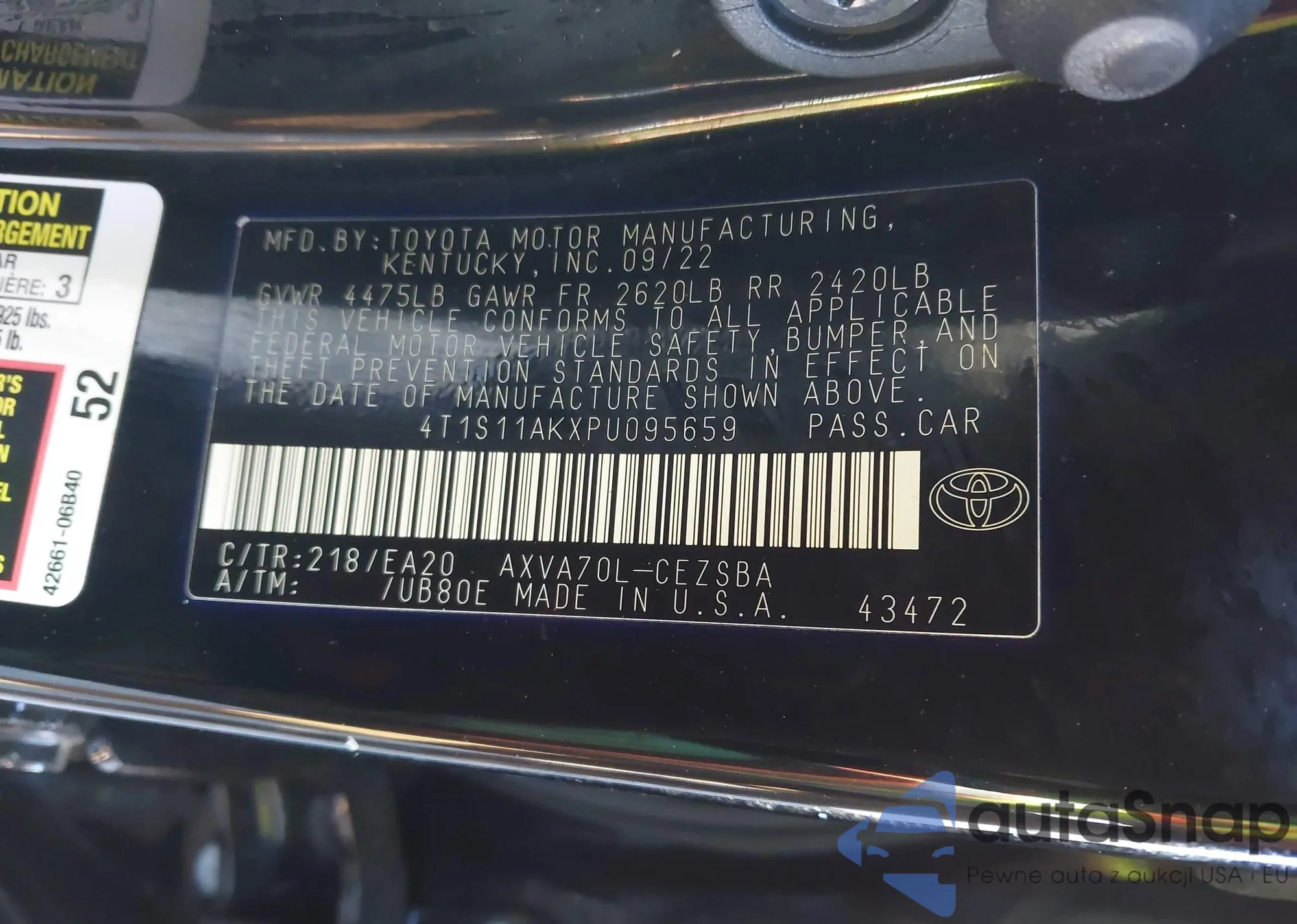 • VIN 4T1S11AKXPU095659