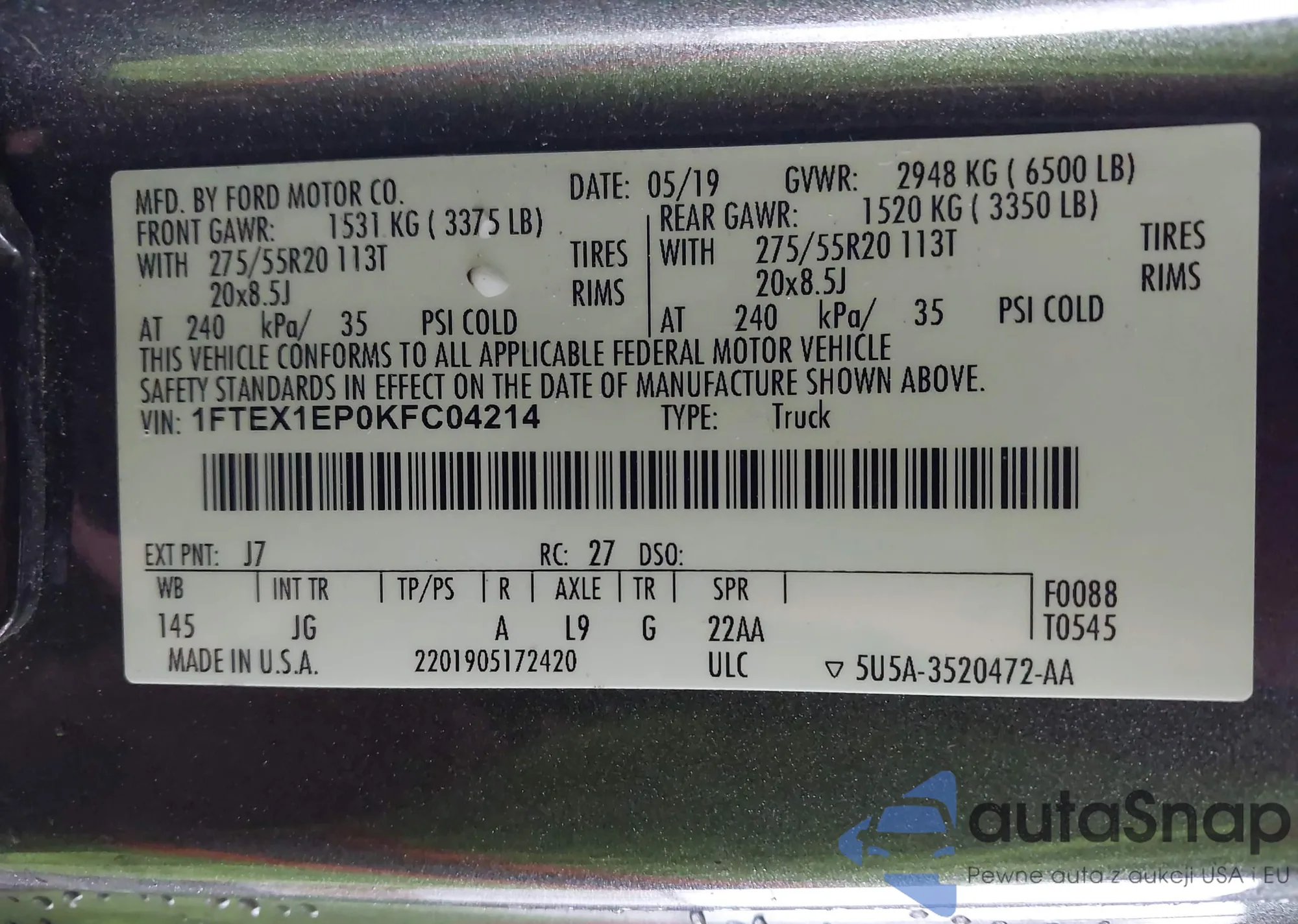 LOT: 44389487 VIN: WA1EAAFY8R2028744