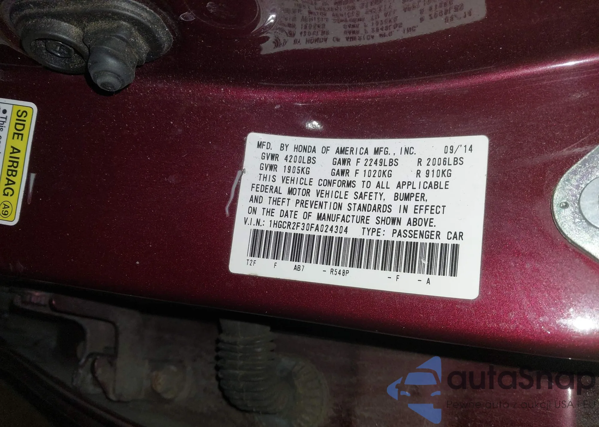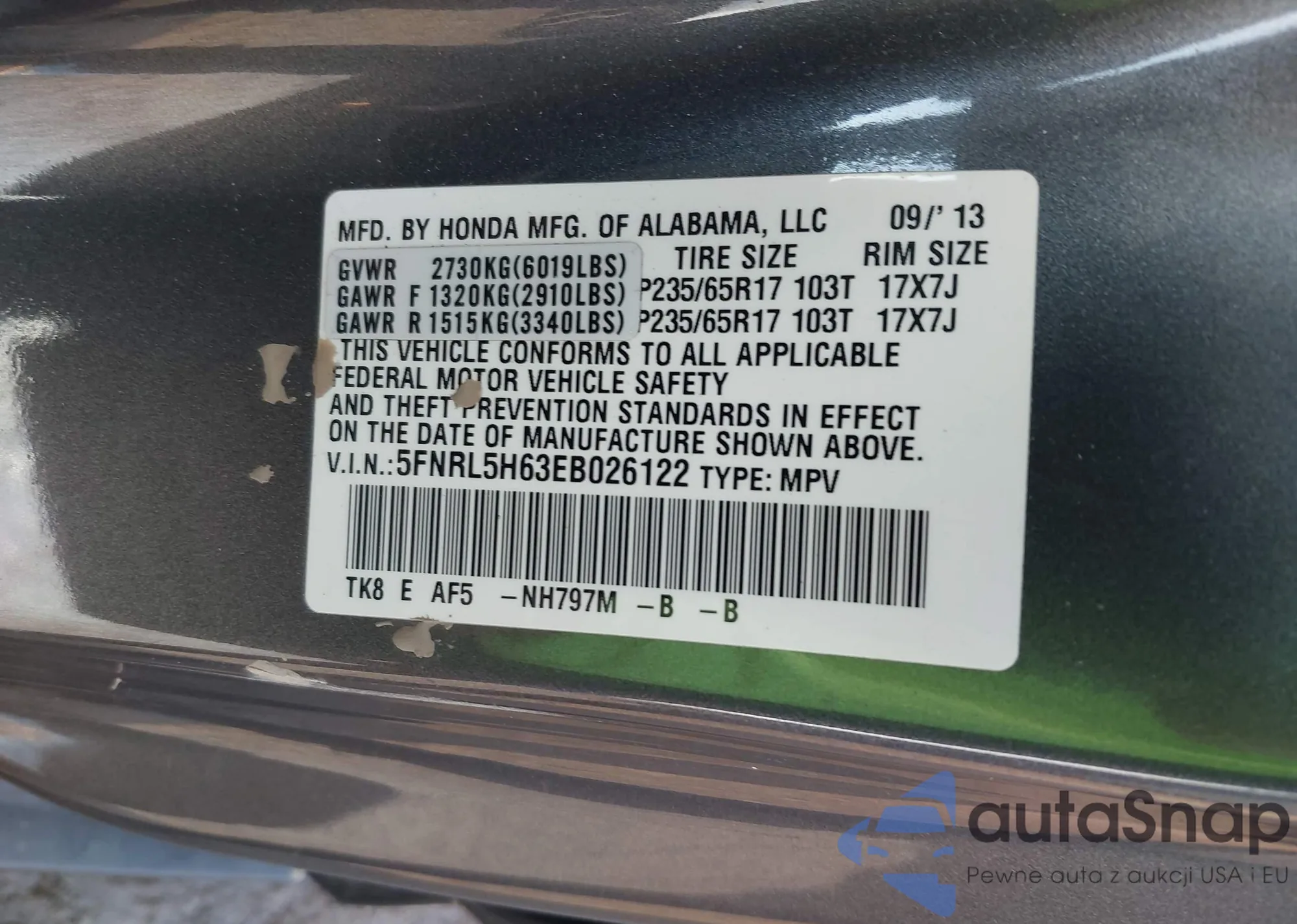 • VIN 5FNRL5H63EB026122