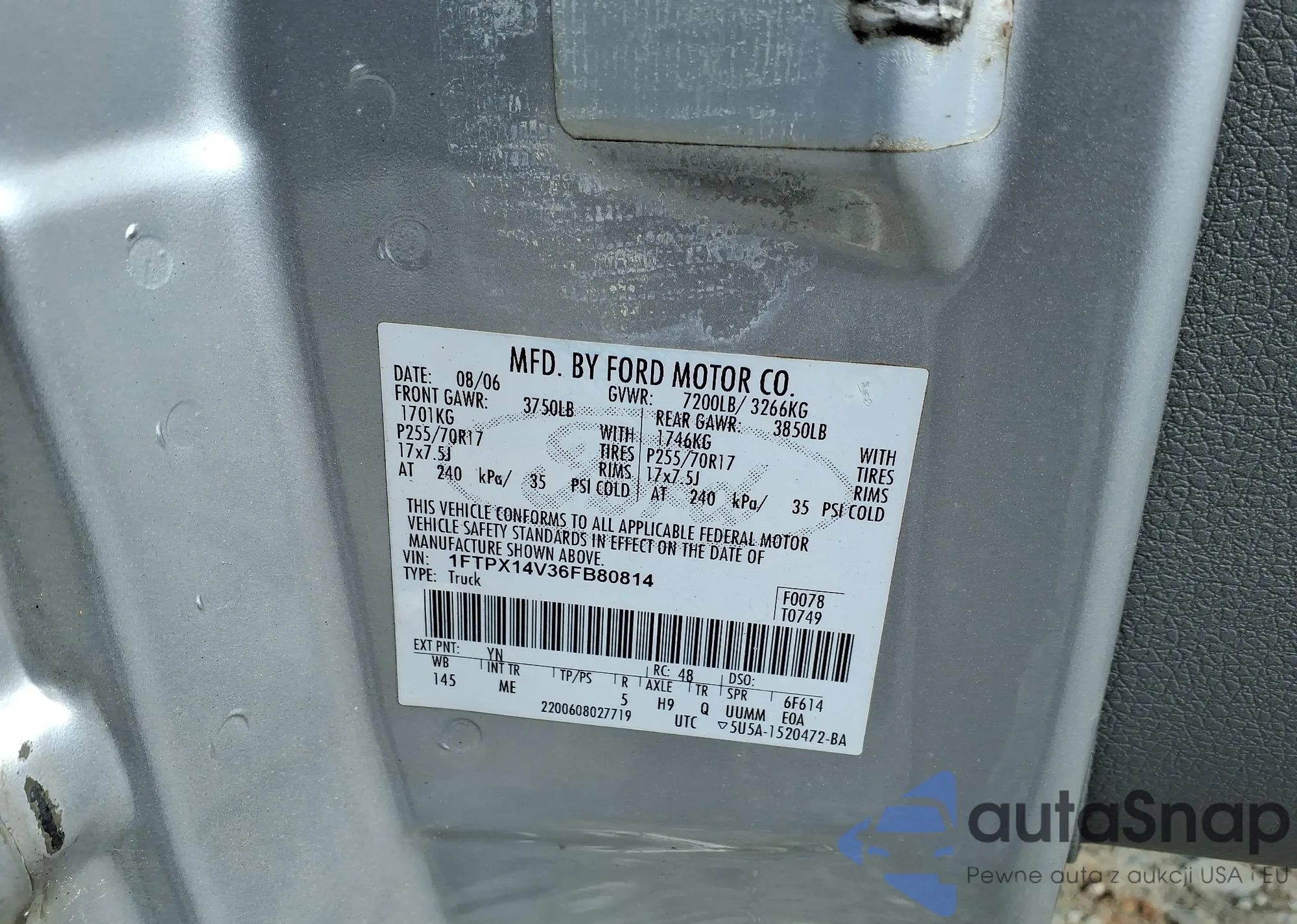 • VIN 1FTPX14V36FB80814