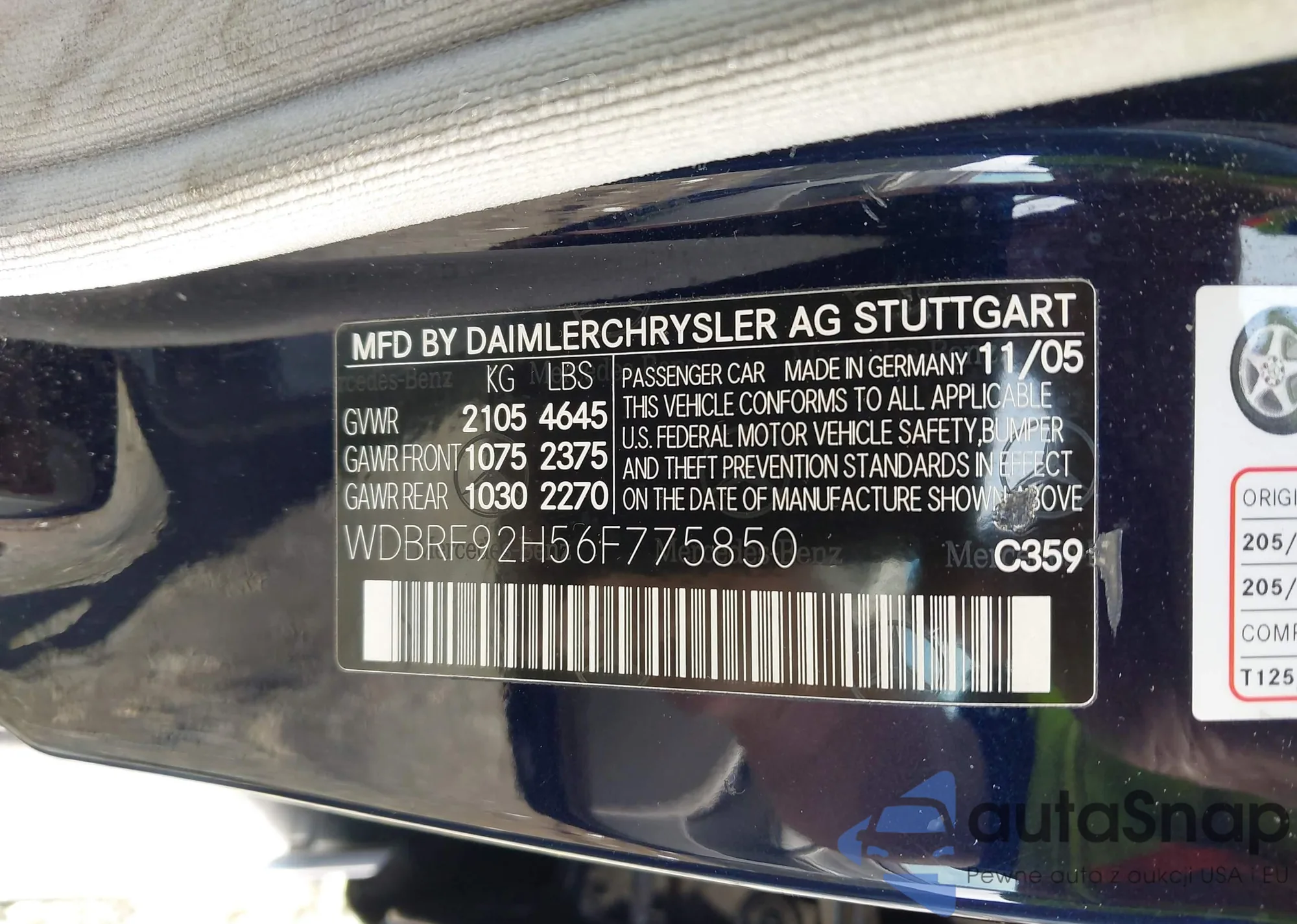 • VIN WDBRF92H56F775850