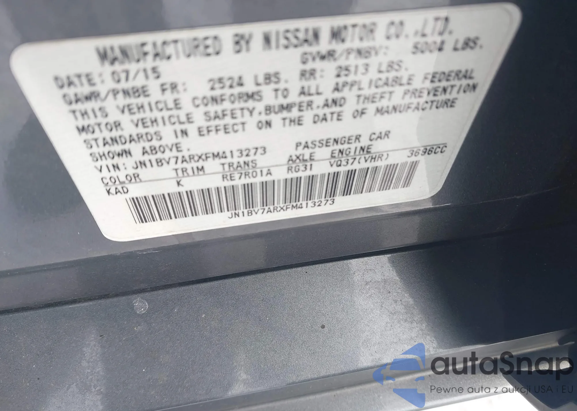 • VIN JN1BV7ARXFM413273