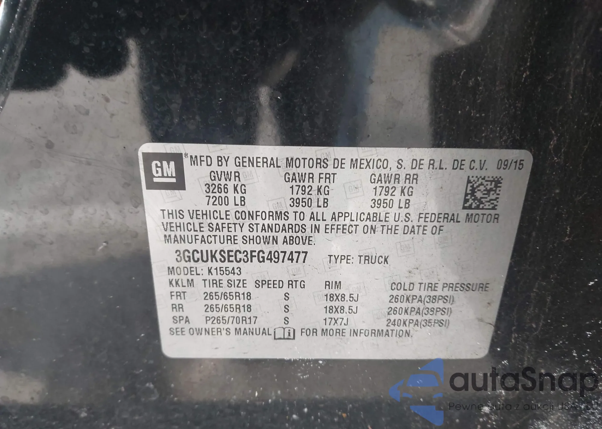 • VIN 3GCUKSEC3FG497477