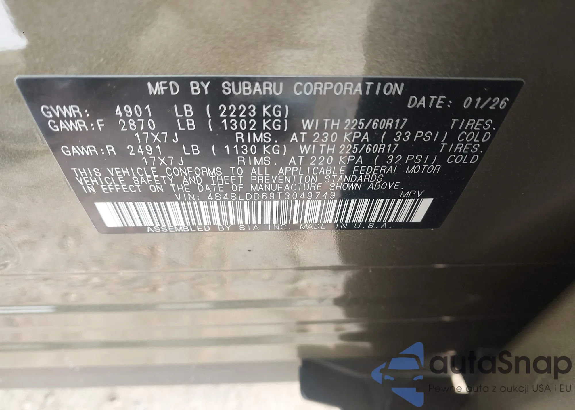 • VIN 4S4SLDD69T3049749