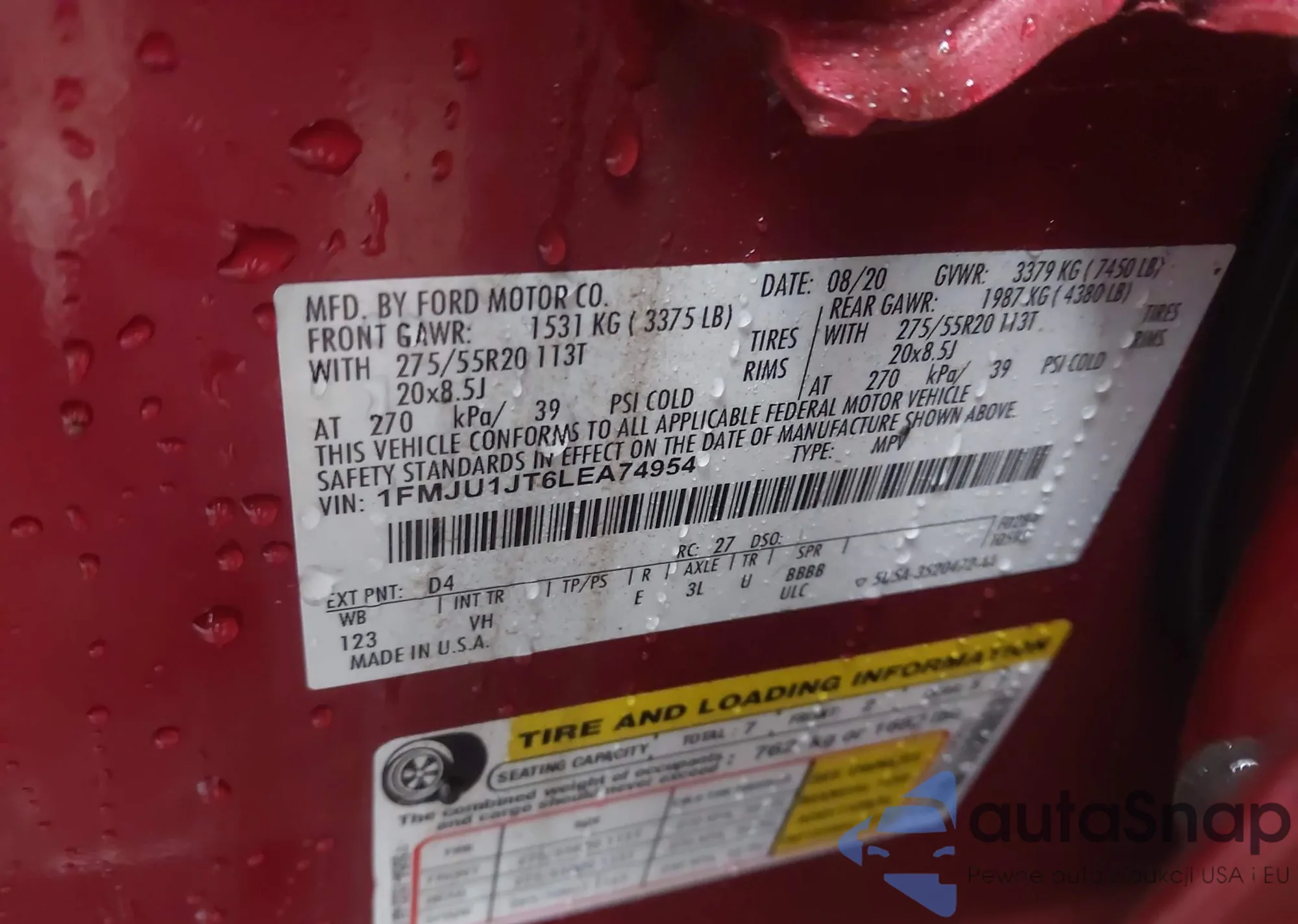 • VIN 1FMJU1JT6LEA74954