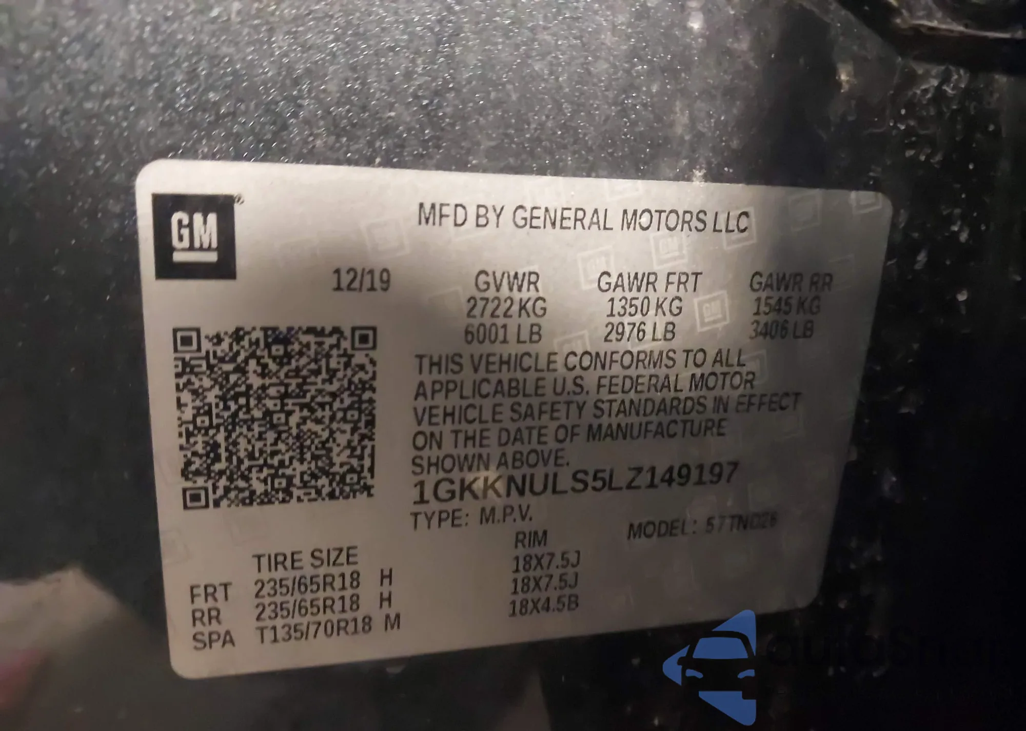 • VIN 1GKKNULS5LZ149197