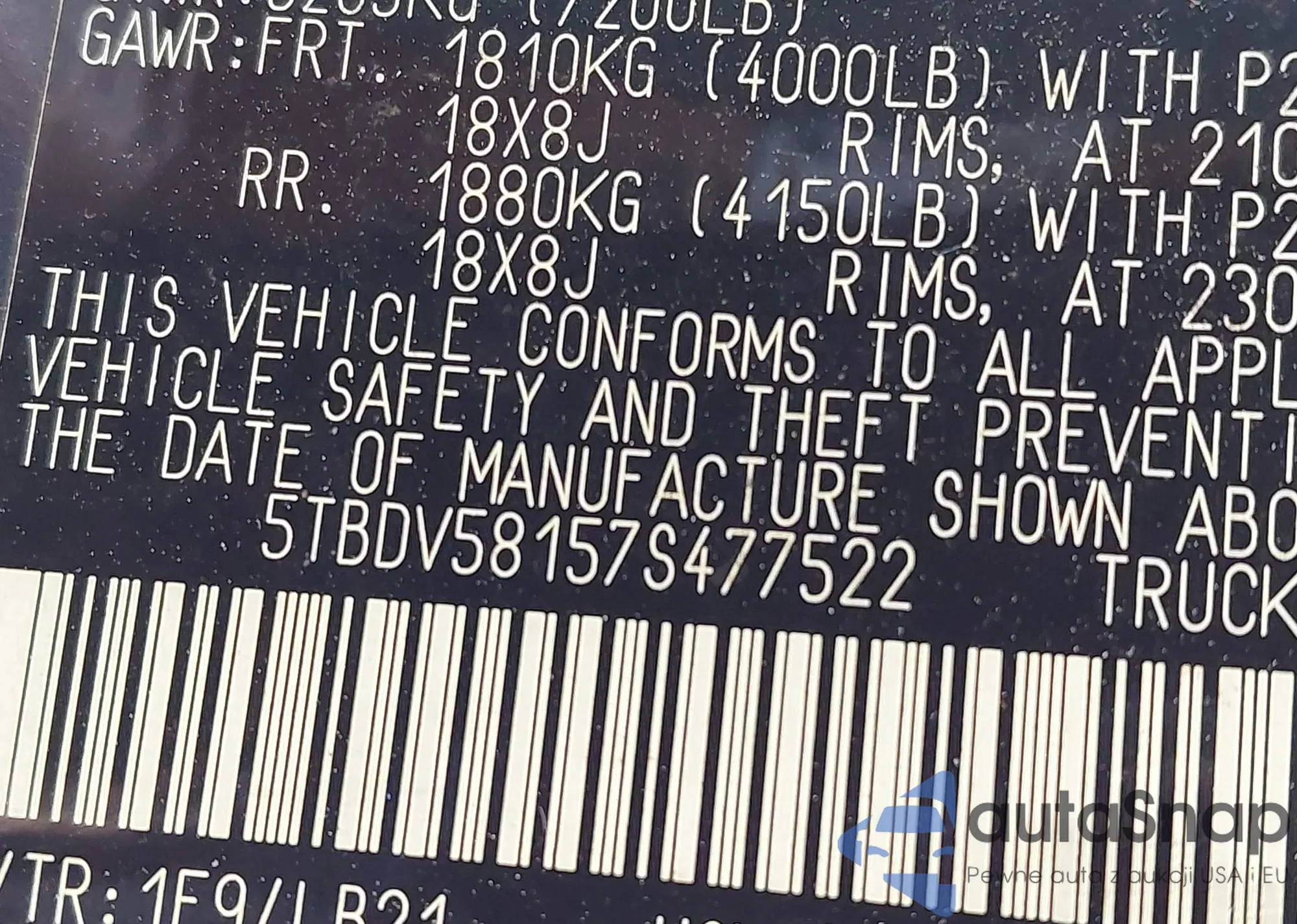 • VIN 4S4BTANC8P3183063