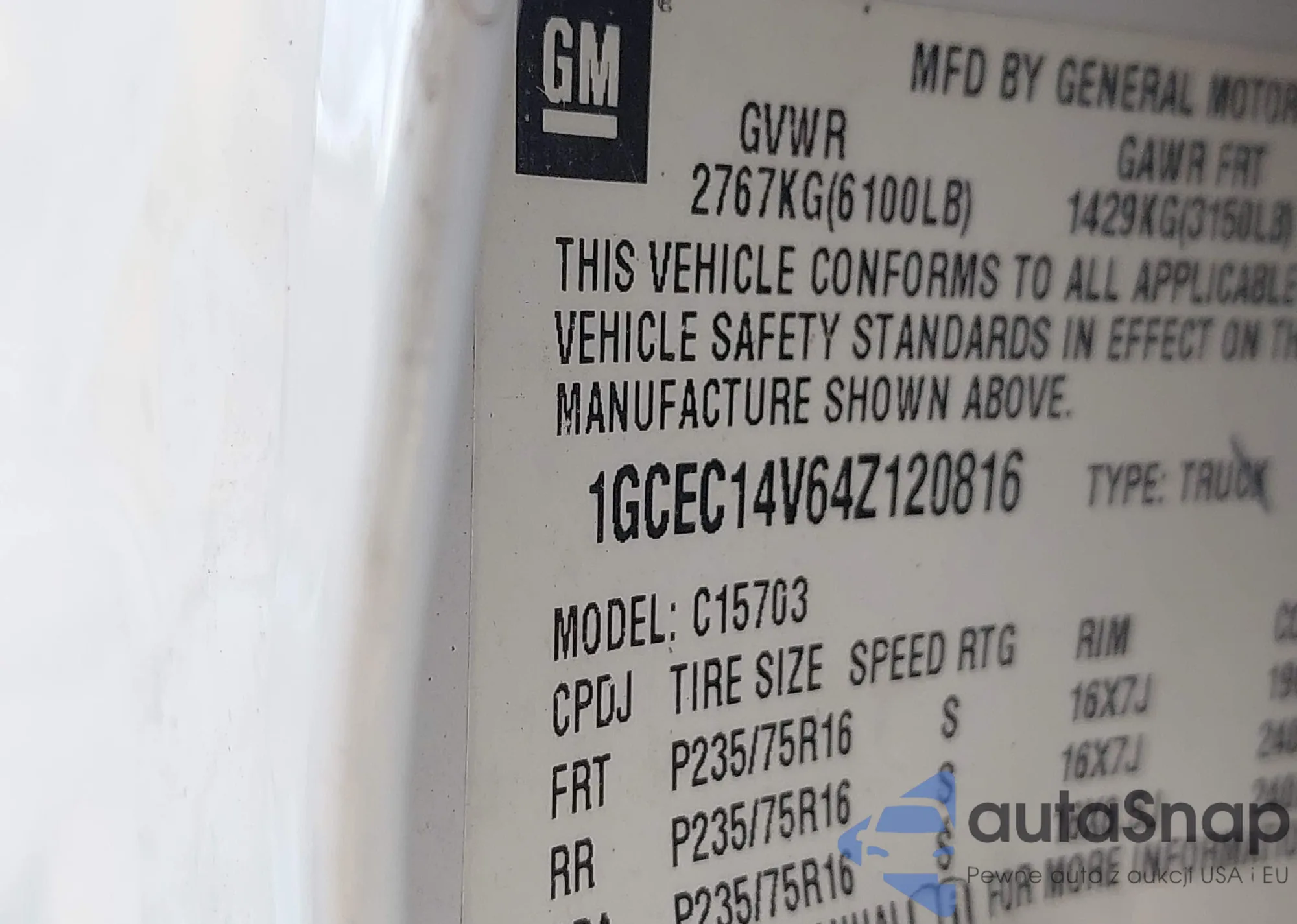LOT: 44438794 VIN: 3GCPCREC0GG284362