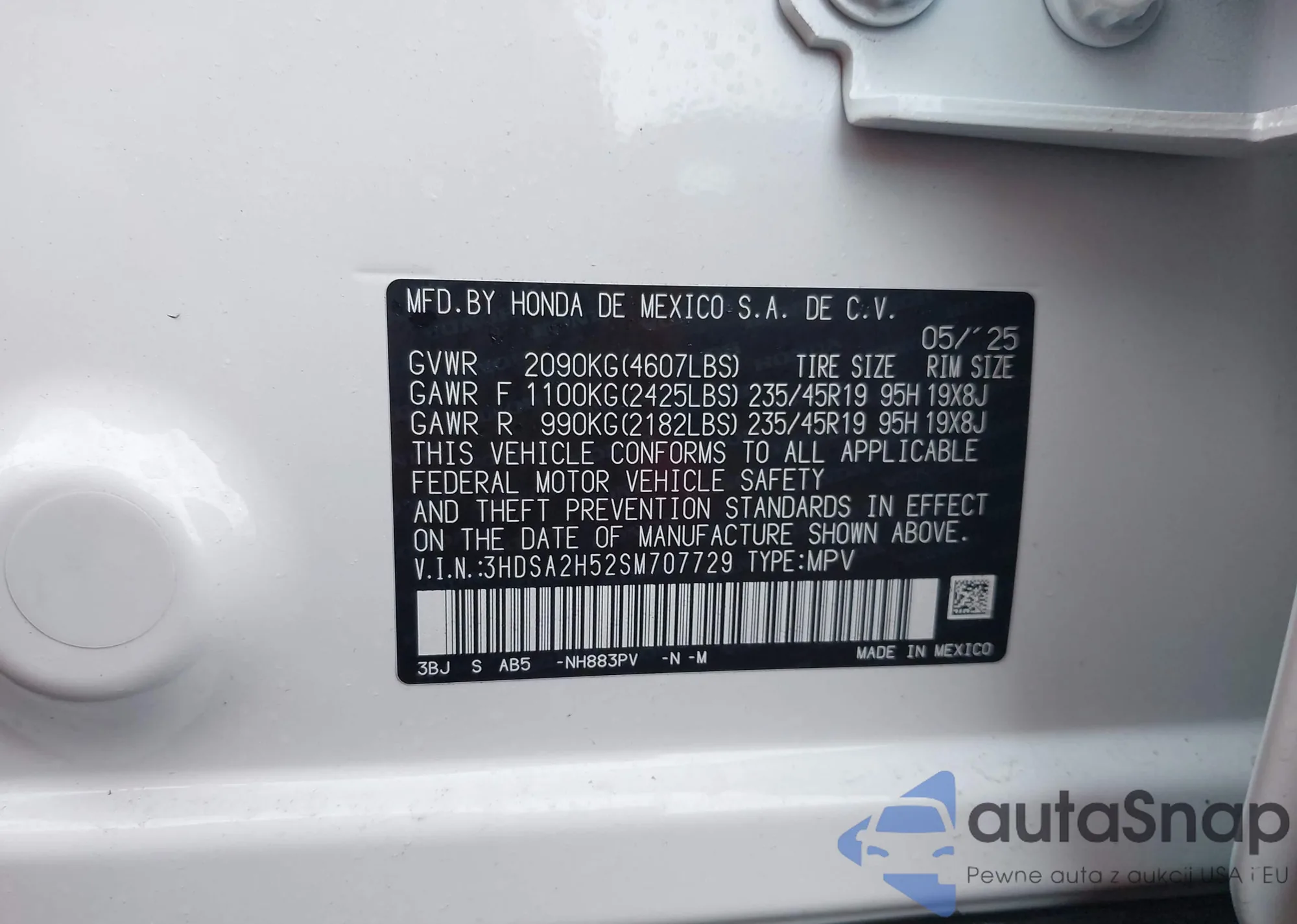 • VIN 3HDSA2H52SM707729