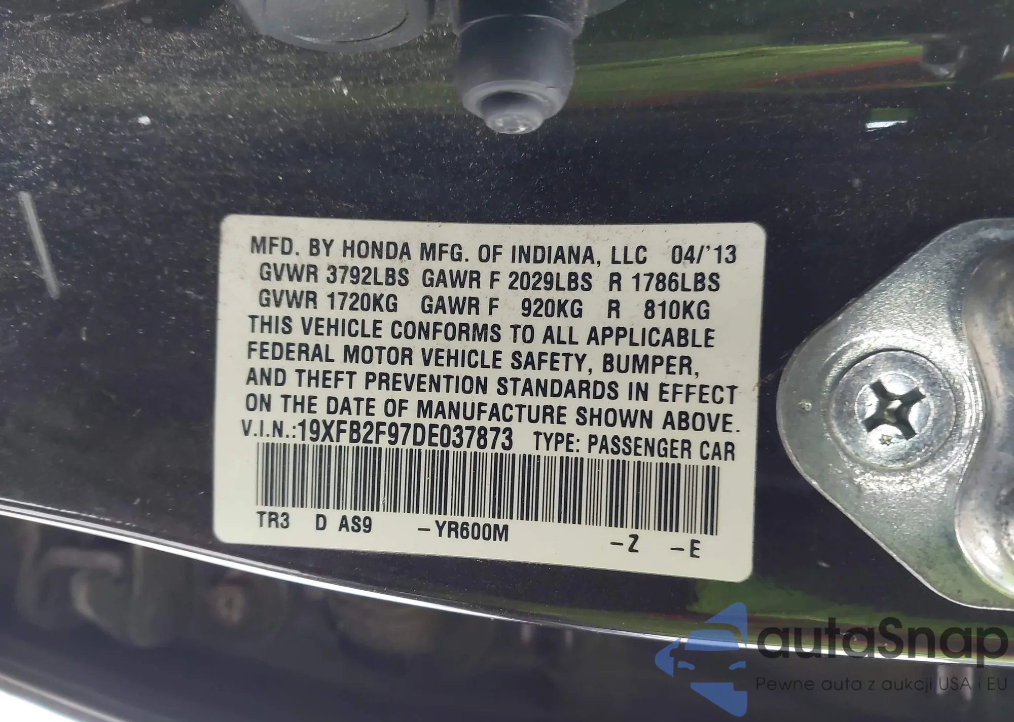 • VIN 19XFB2F97DE037873