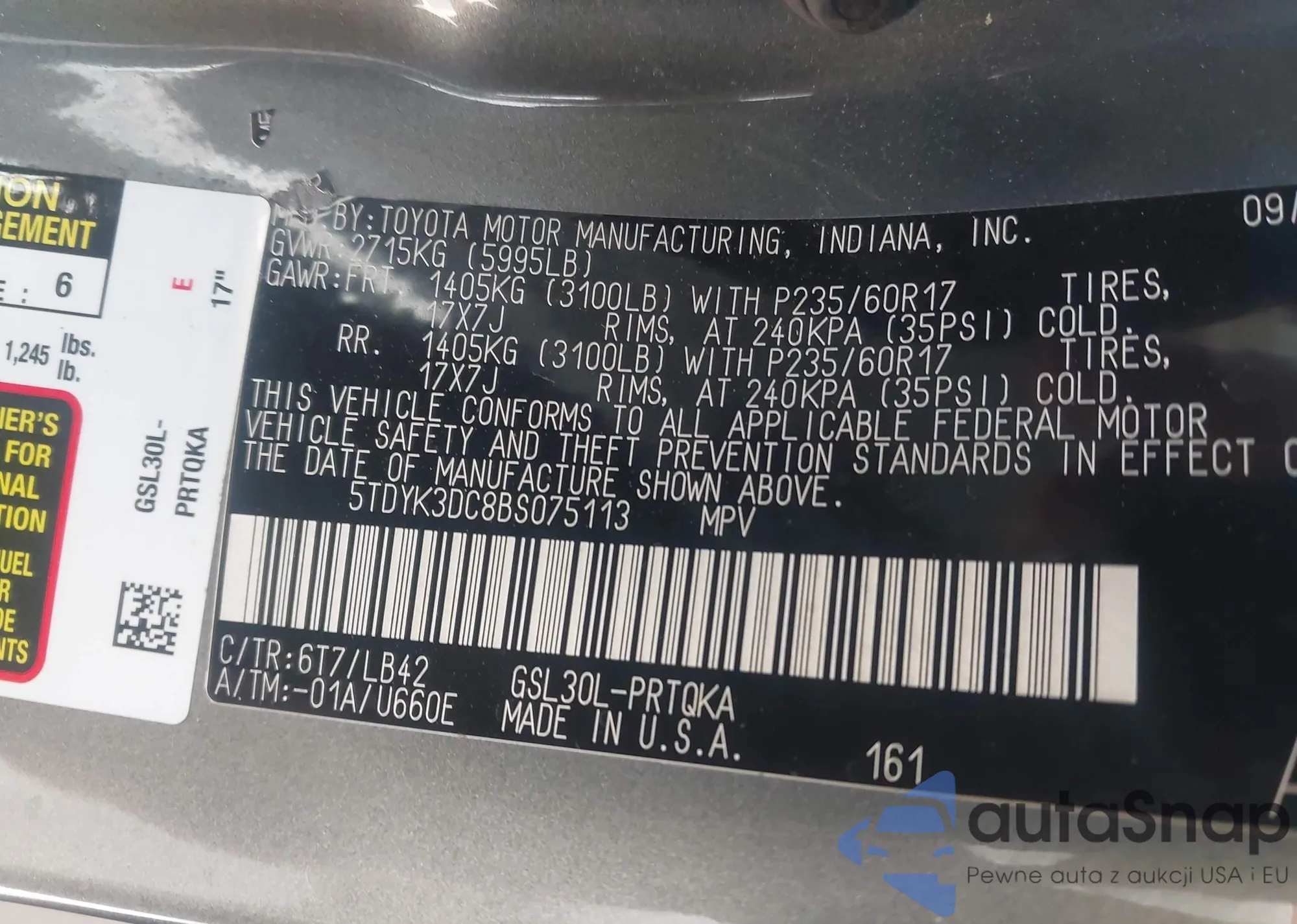 • VIN 5TDYK3DC8BS075113