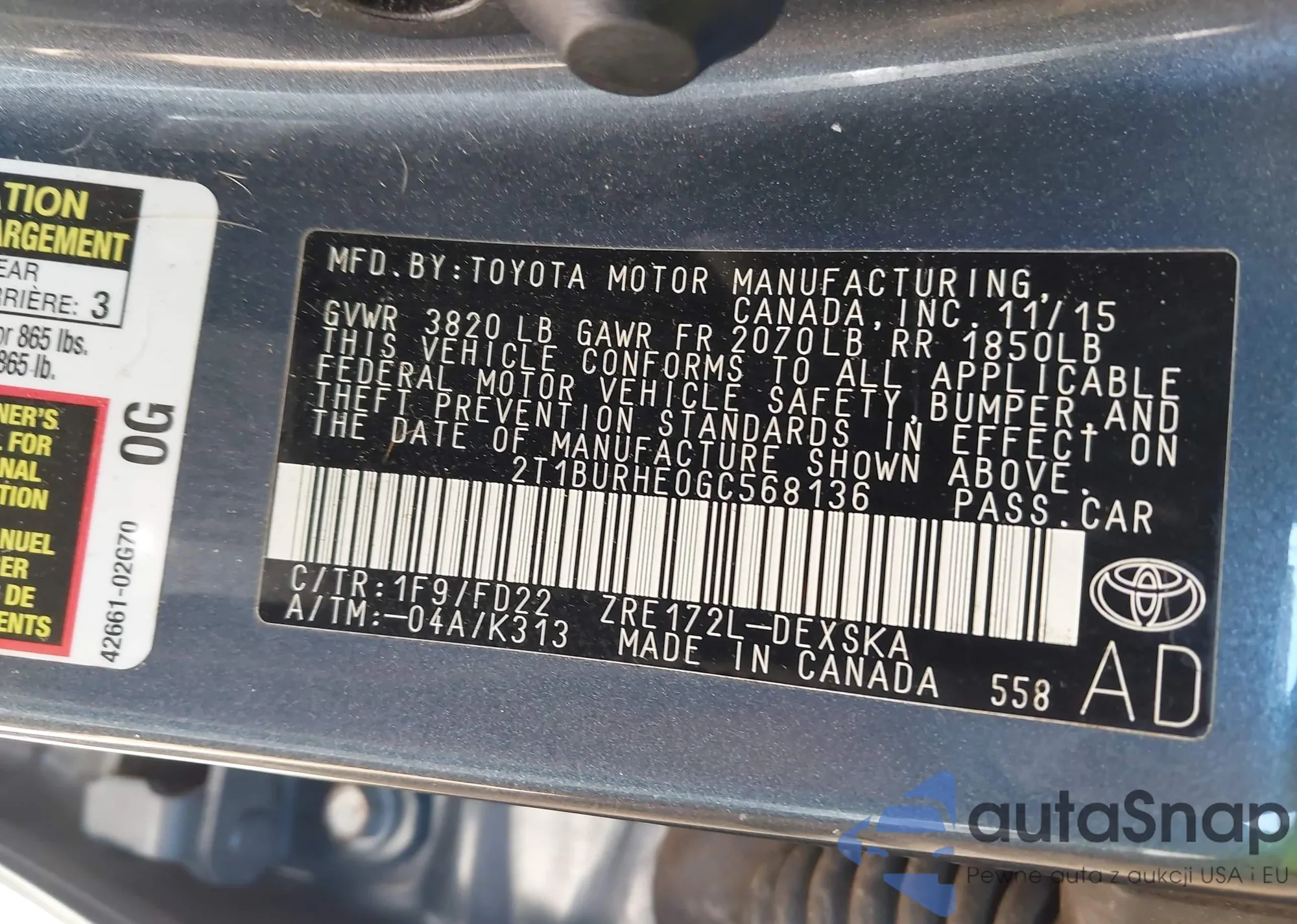 • VIN 2T1BURHE0GC568136