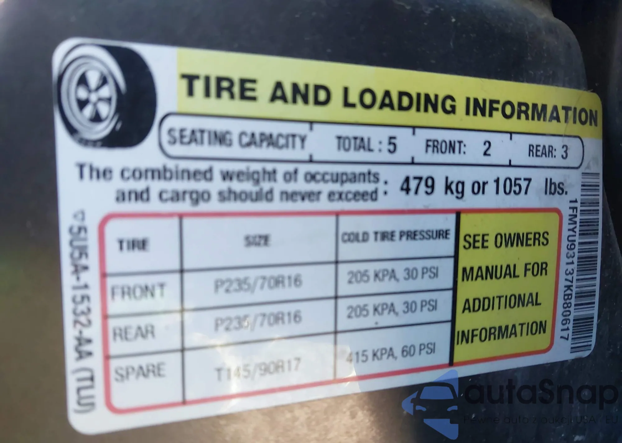 • VIN 1FMCU0CZ7MUB25437
