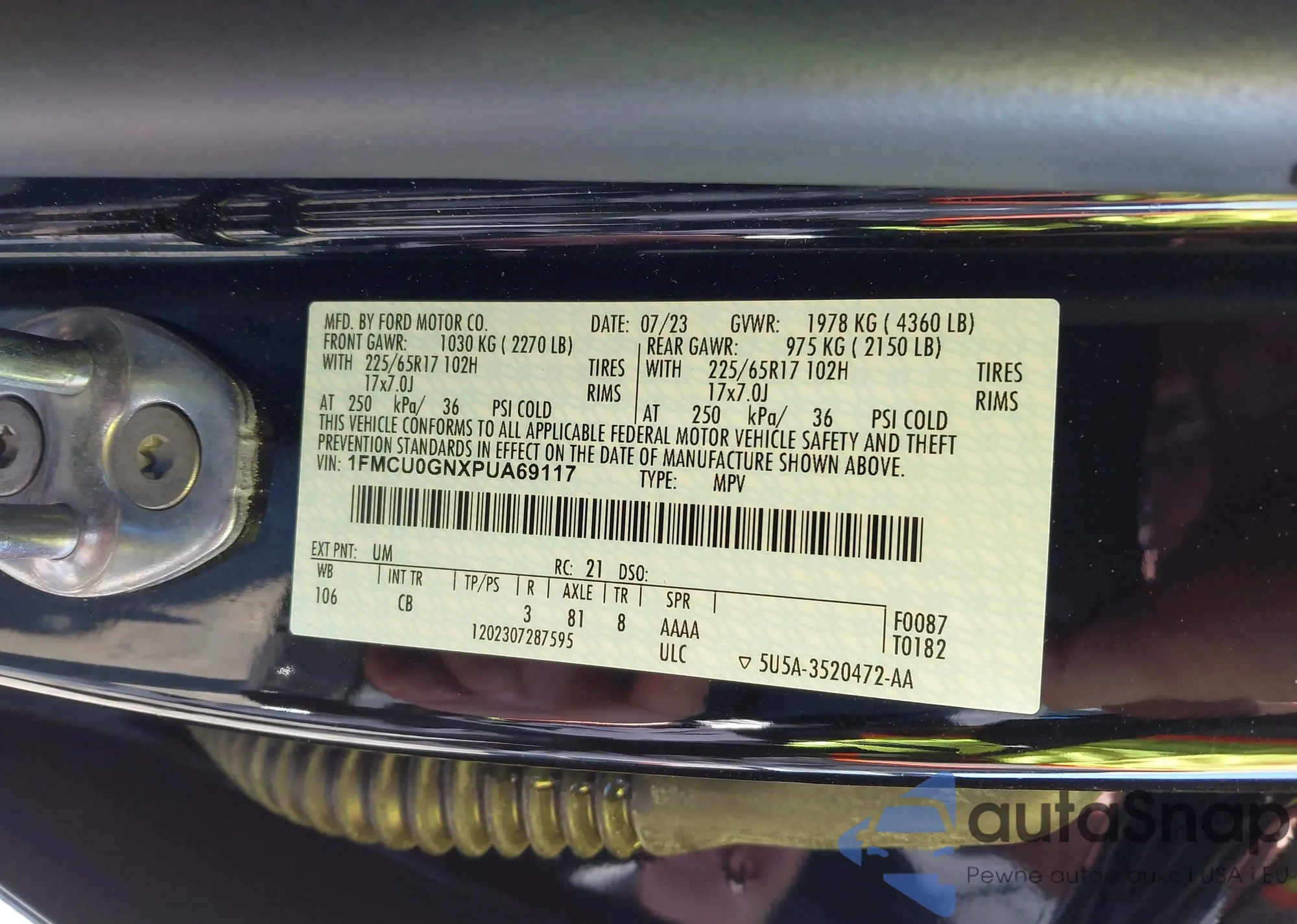 • VIN 1FMCU0GNXPUA69117
