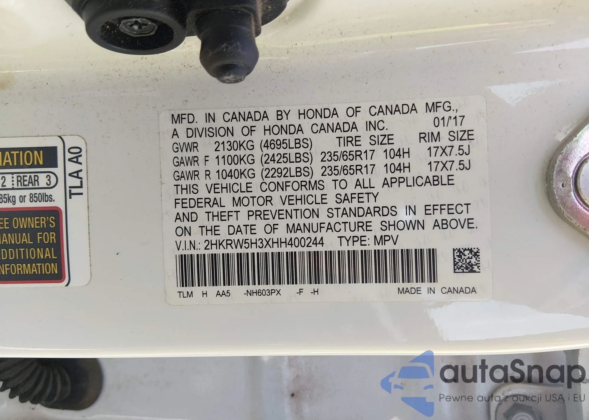 • VIN 2HKRW5H3XHH400244