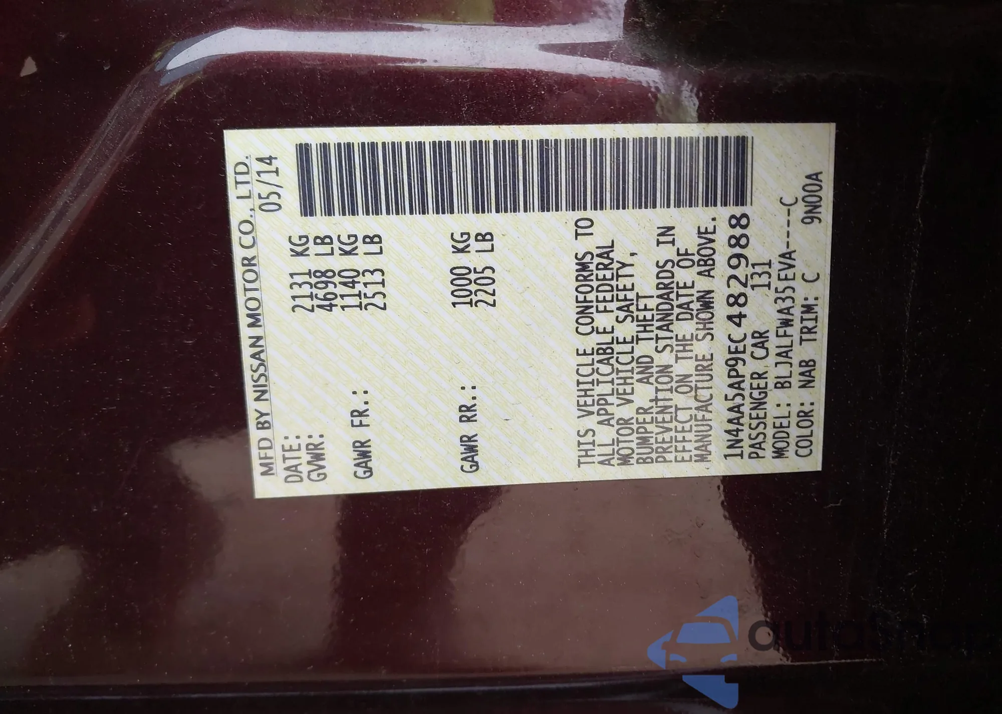 • VIN 1N4AA5AP9EC482988
