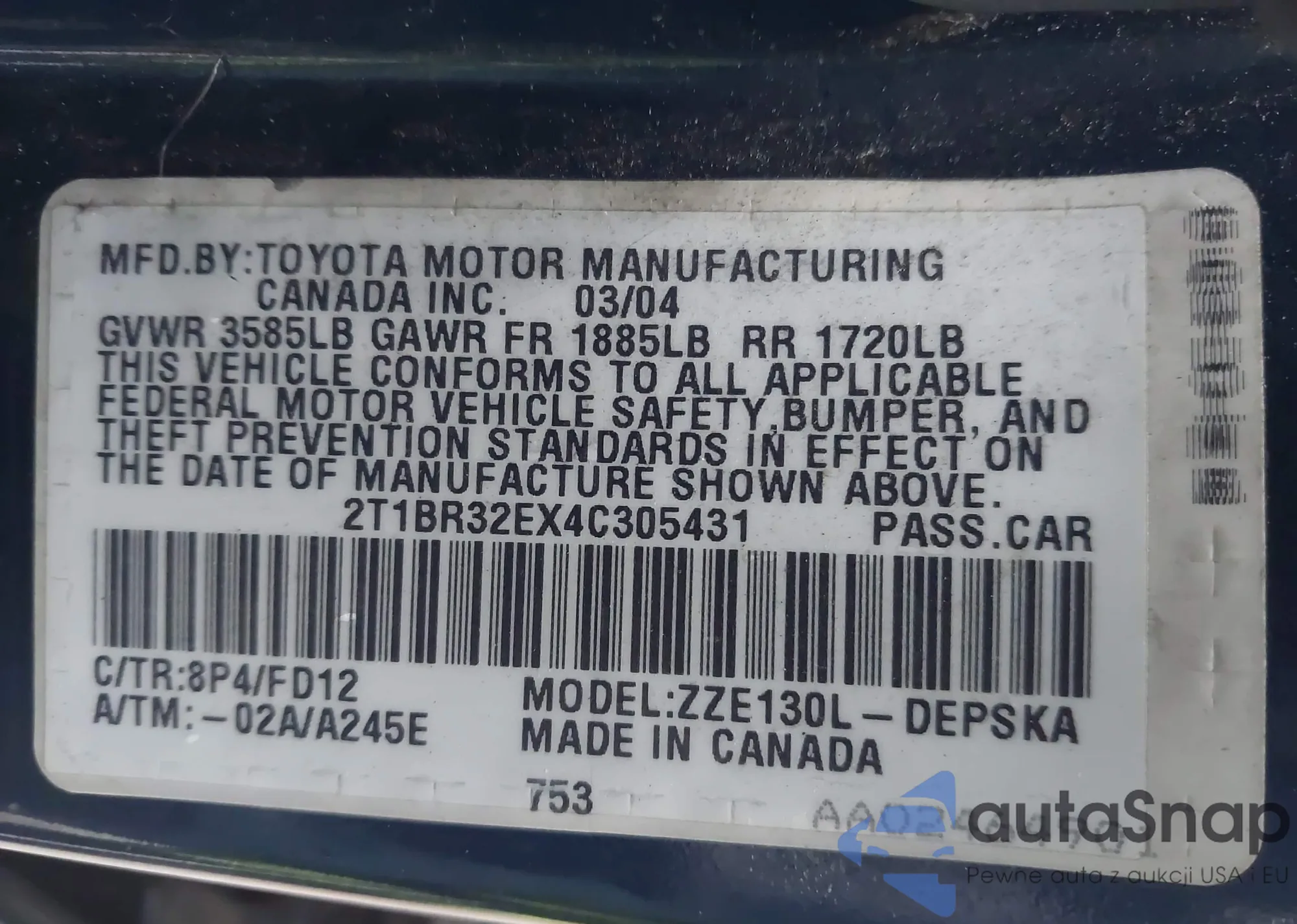 • VIN 2T1BR32EX4C305431