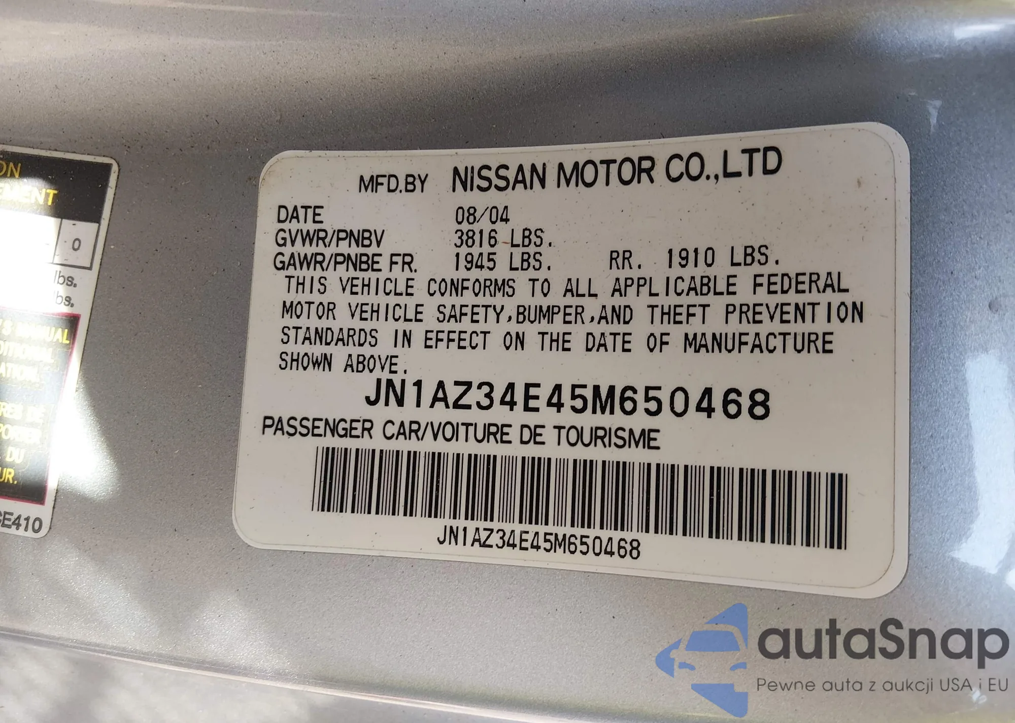 LOT: 44347840 VIN: JN1AZ34E45M650468