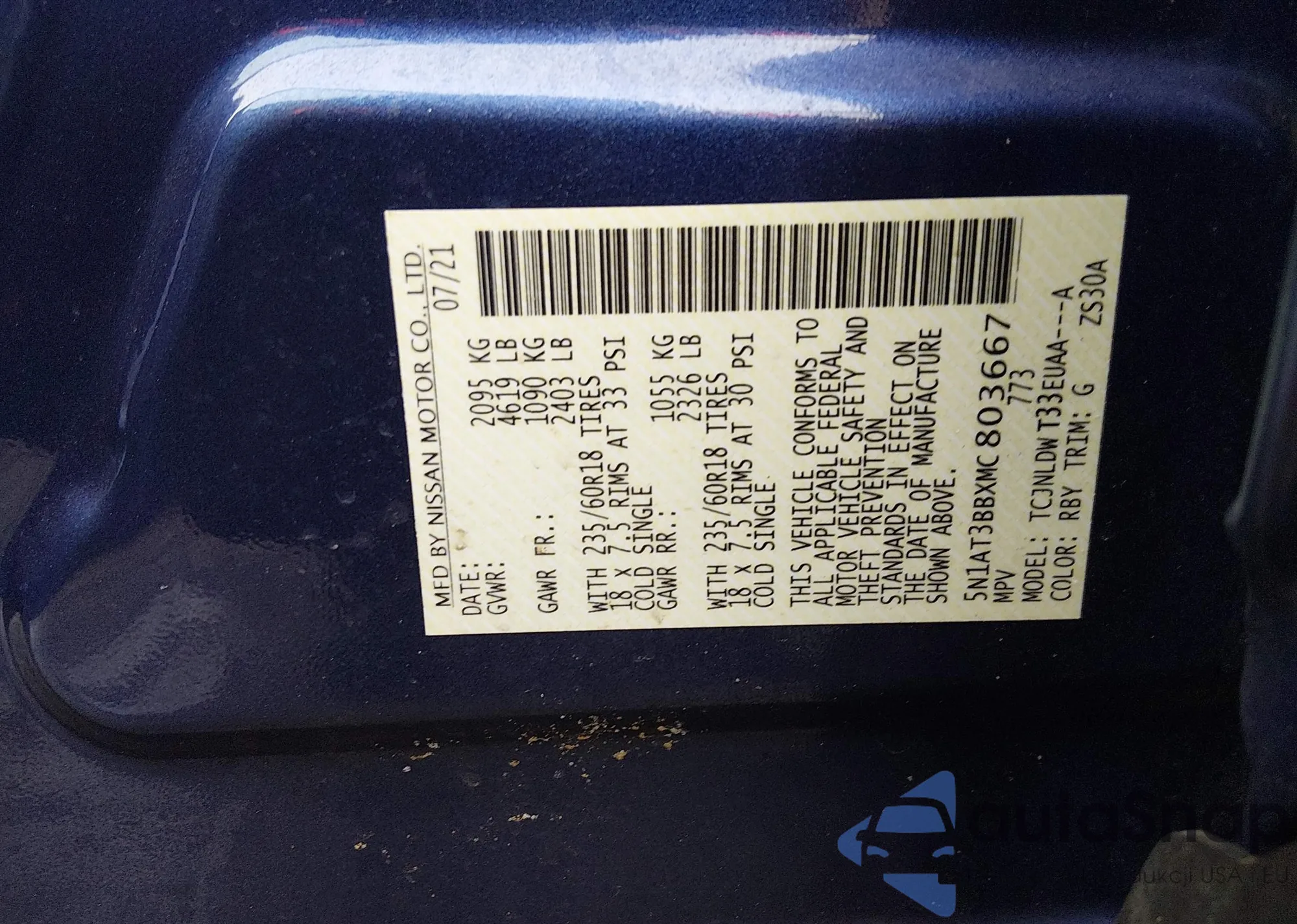 LOT: 44421651 VIN: 5N1AT3BBXMC803667