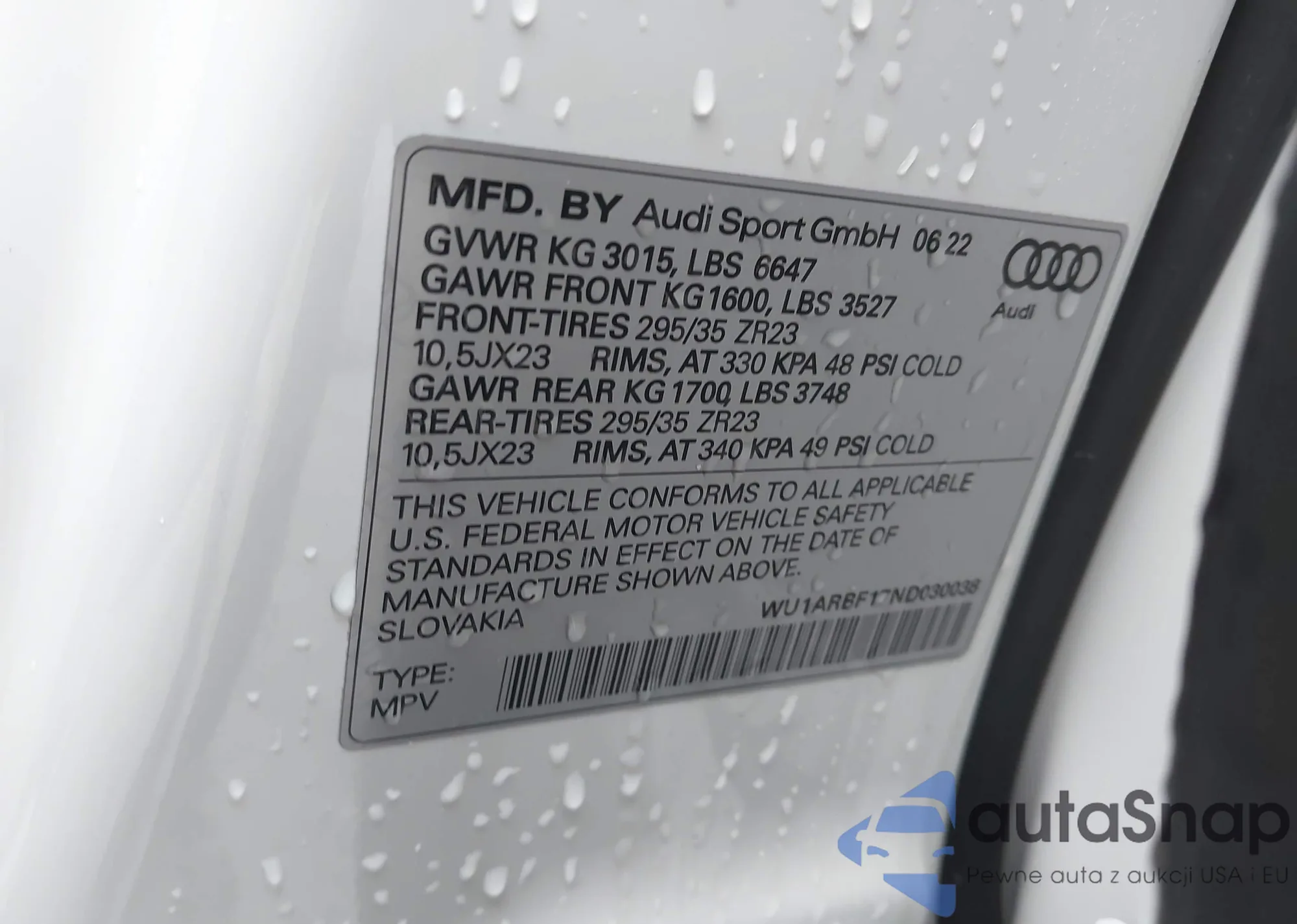 LOT: 44536611 VIN: WU1ARBF17ND030038