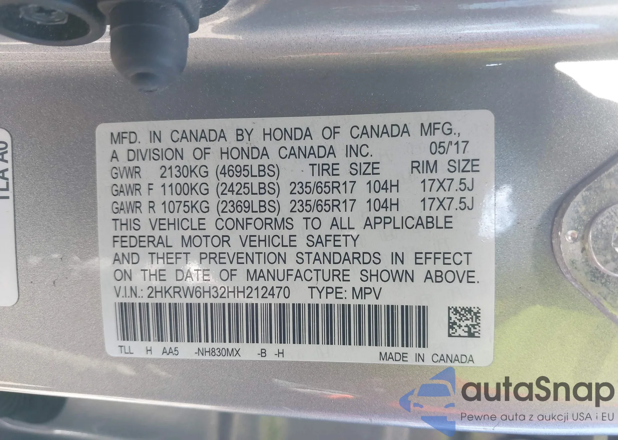 • VIN 2HKRW6H32HH212470