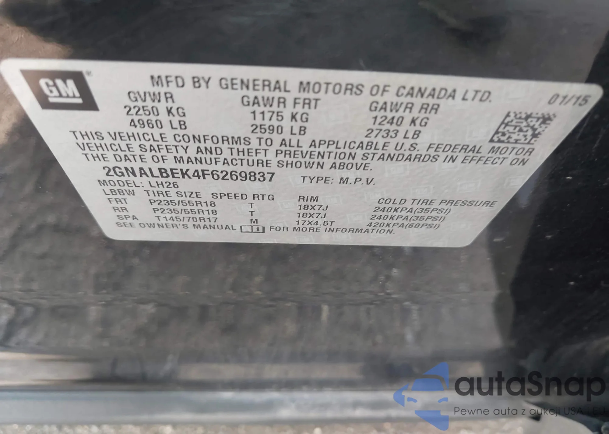 • VIN 2HKRW1H52LH405179