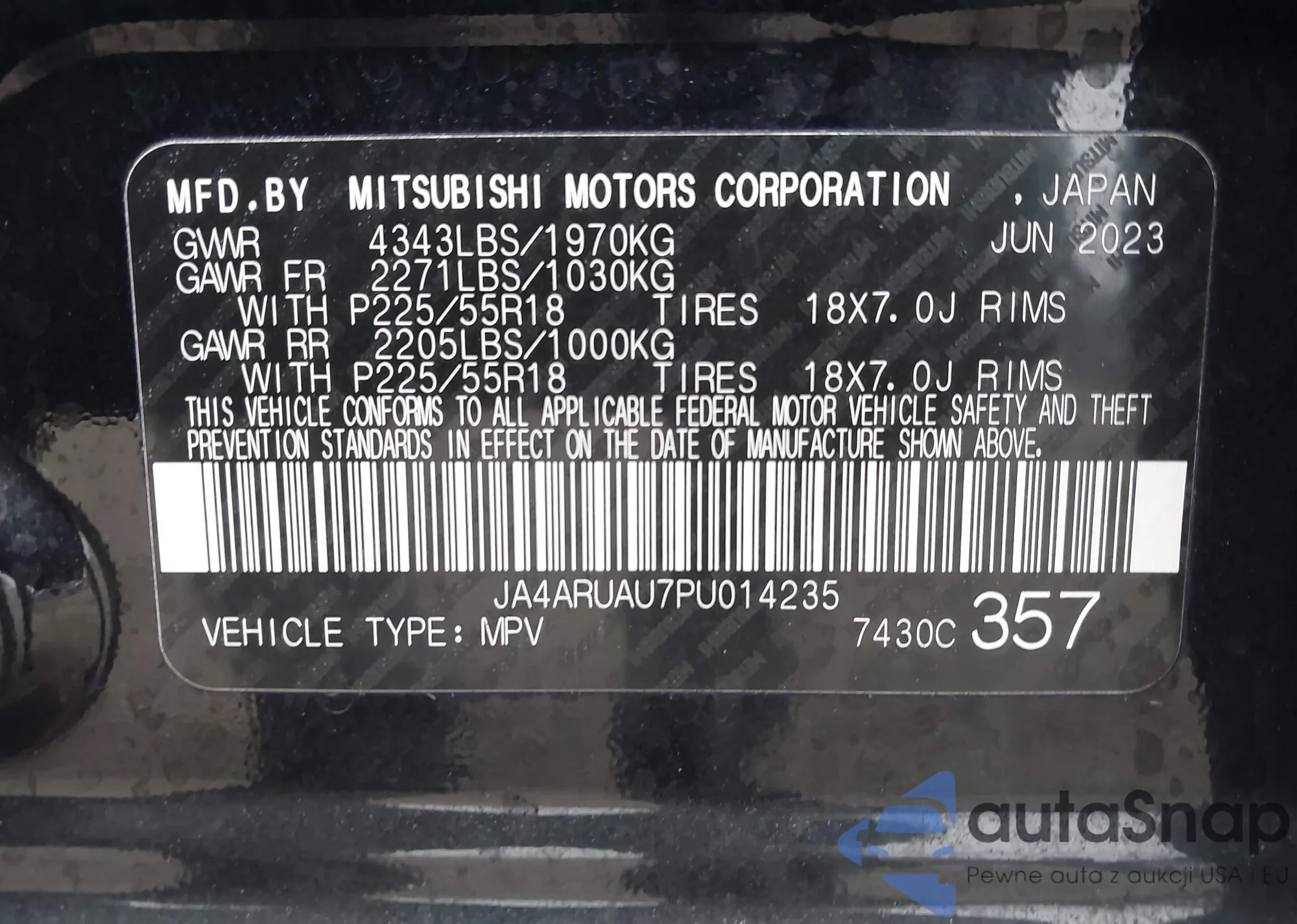 • VIN JA4ARUAU7PU014235