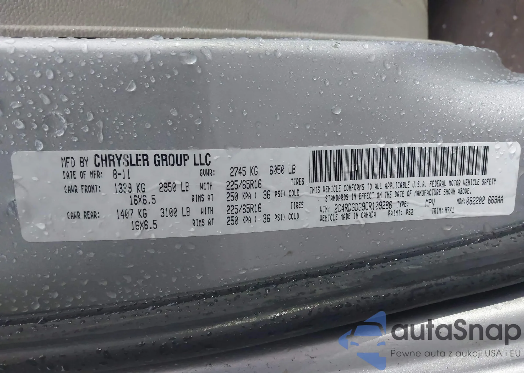 • VIN 2C4RDGDG9CR109286