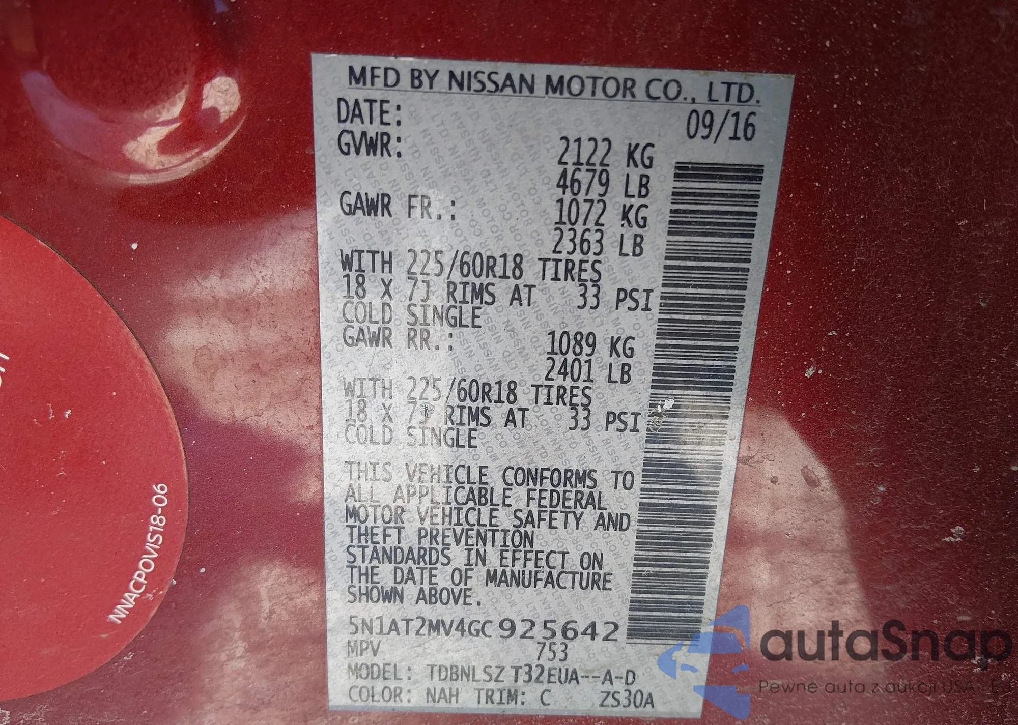 • VIN 5N1AT2MV4GC925642