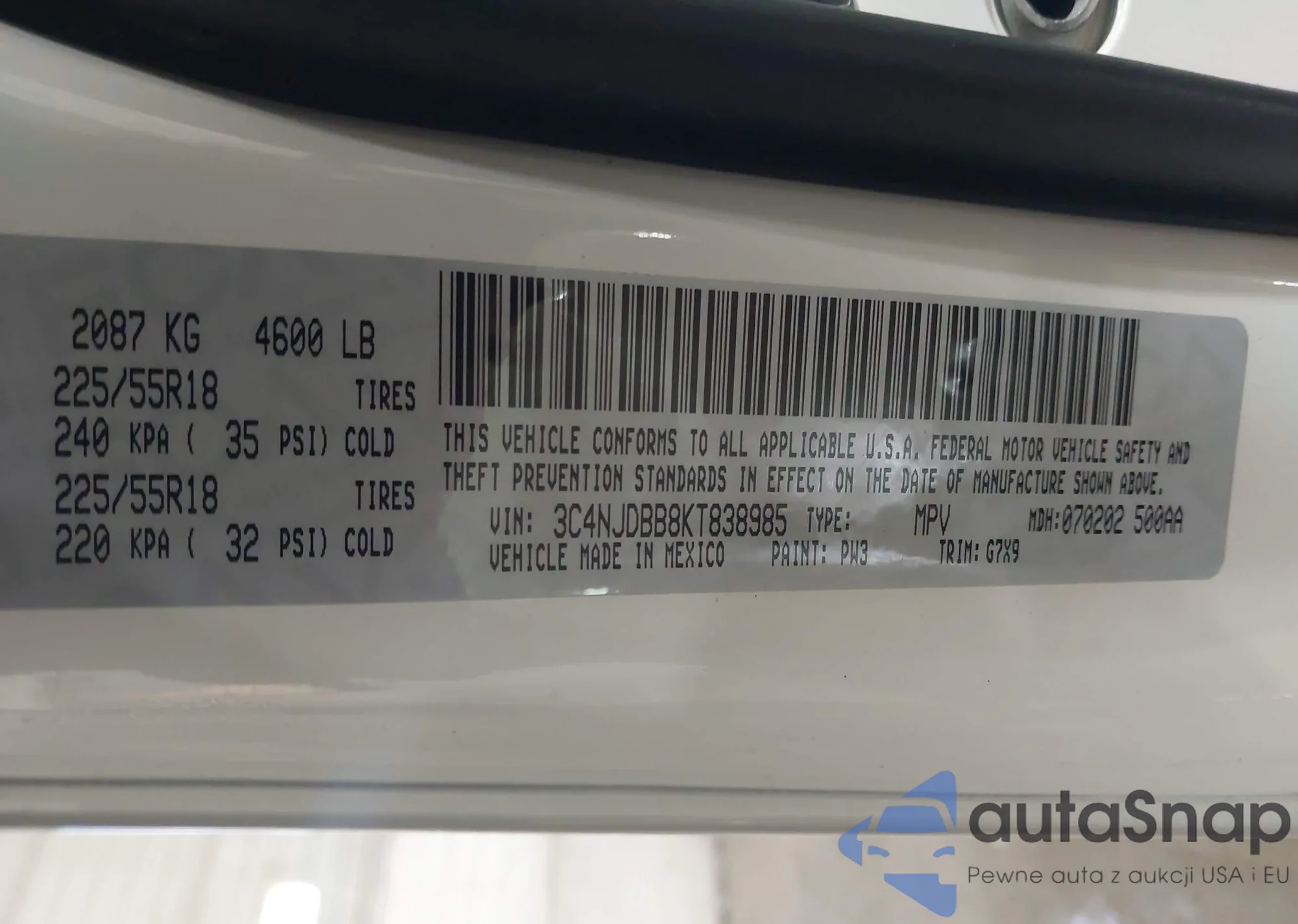 • VIN 3C4NJDBB8KT838985