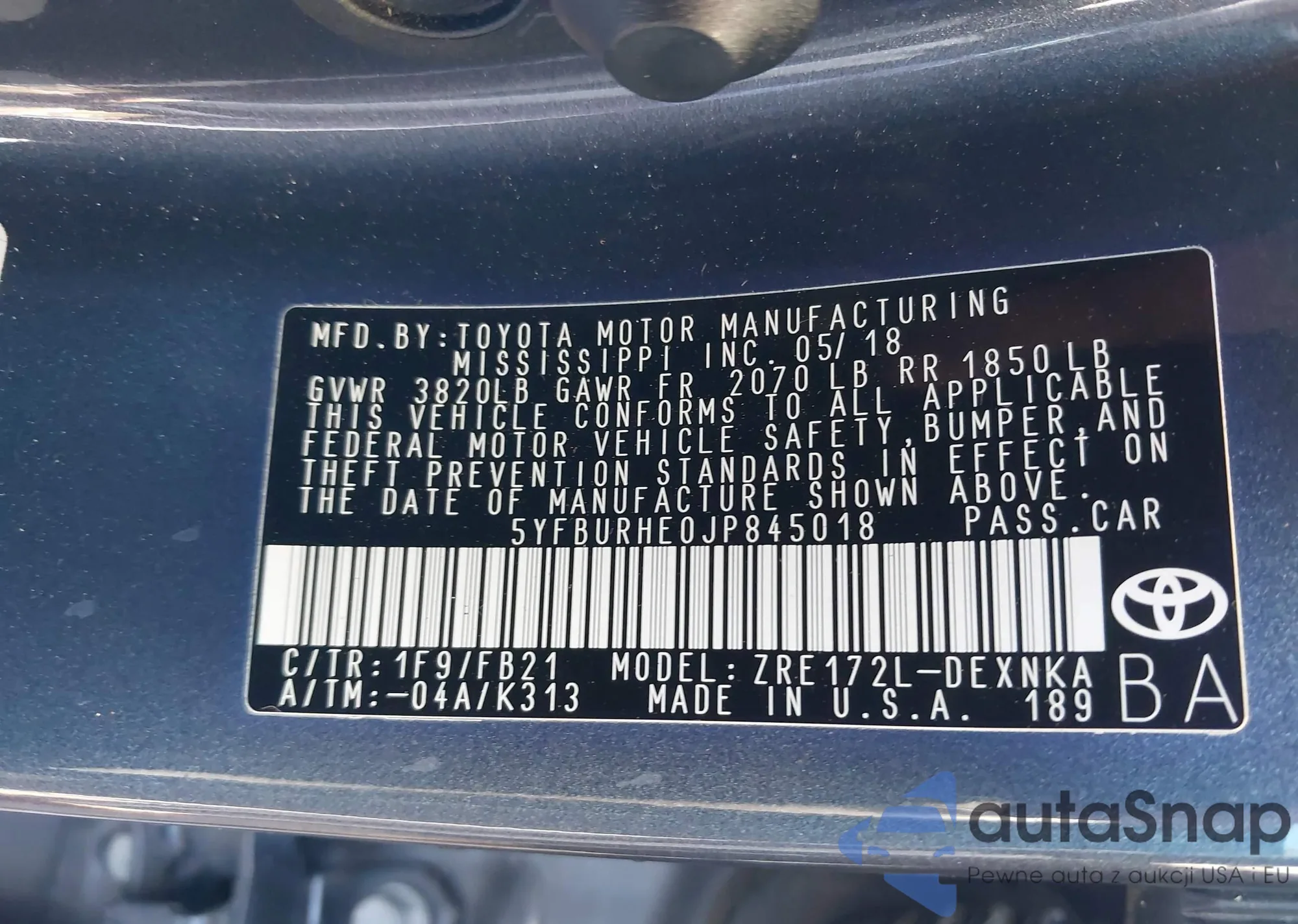 • VIN 5YFBURHE0JP845018