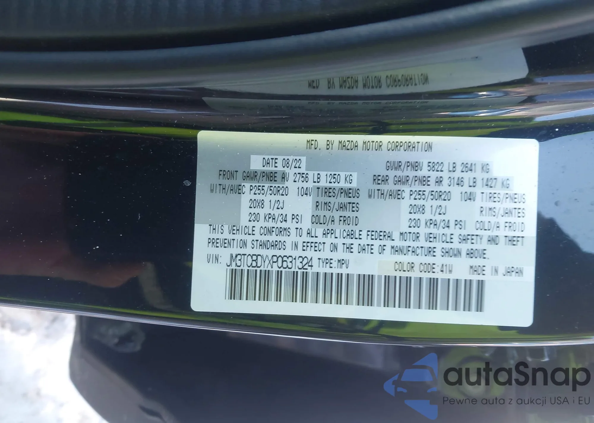 • VIN 5XYRH4LF0MG034480