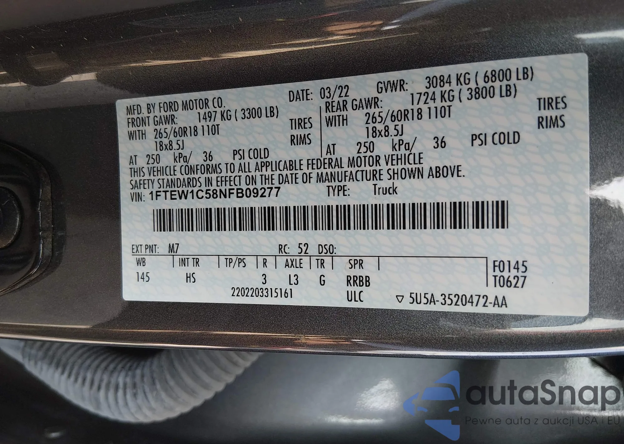 LOT: 44419133 VIN: 1FTEW1C58NFB09277