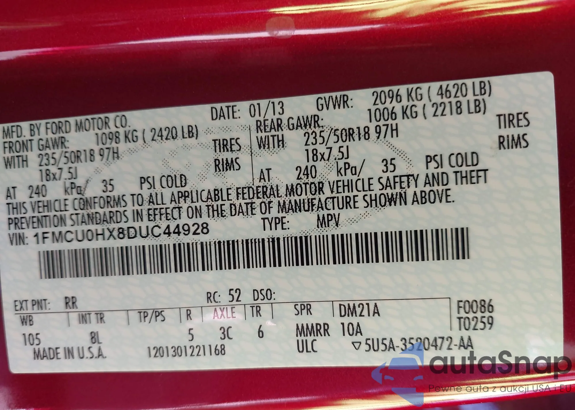 LOT: 44287228 VIN: 1FMHK8F82BGA29305