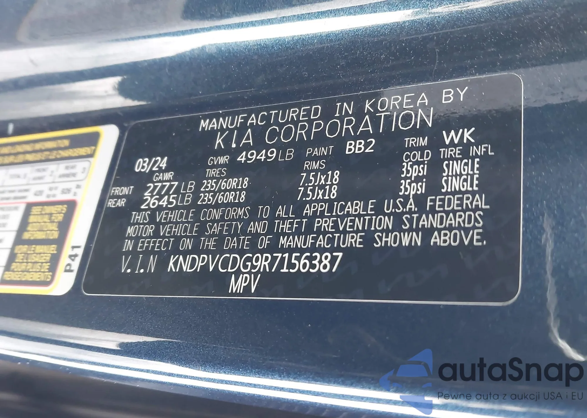 LOT: 43837466 VIN: KNDPVCDG9R7156387