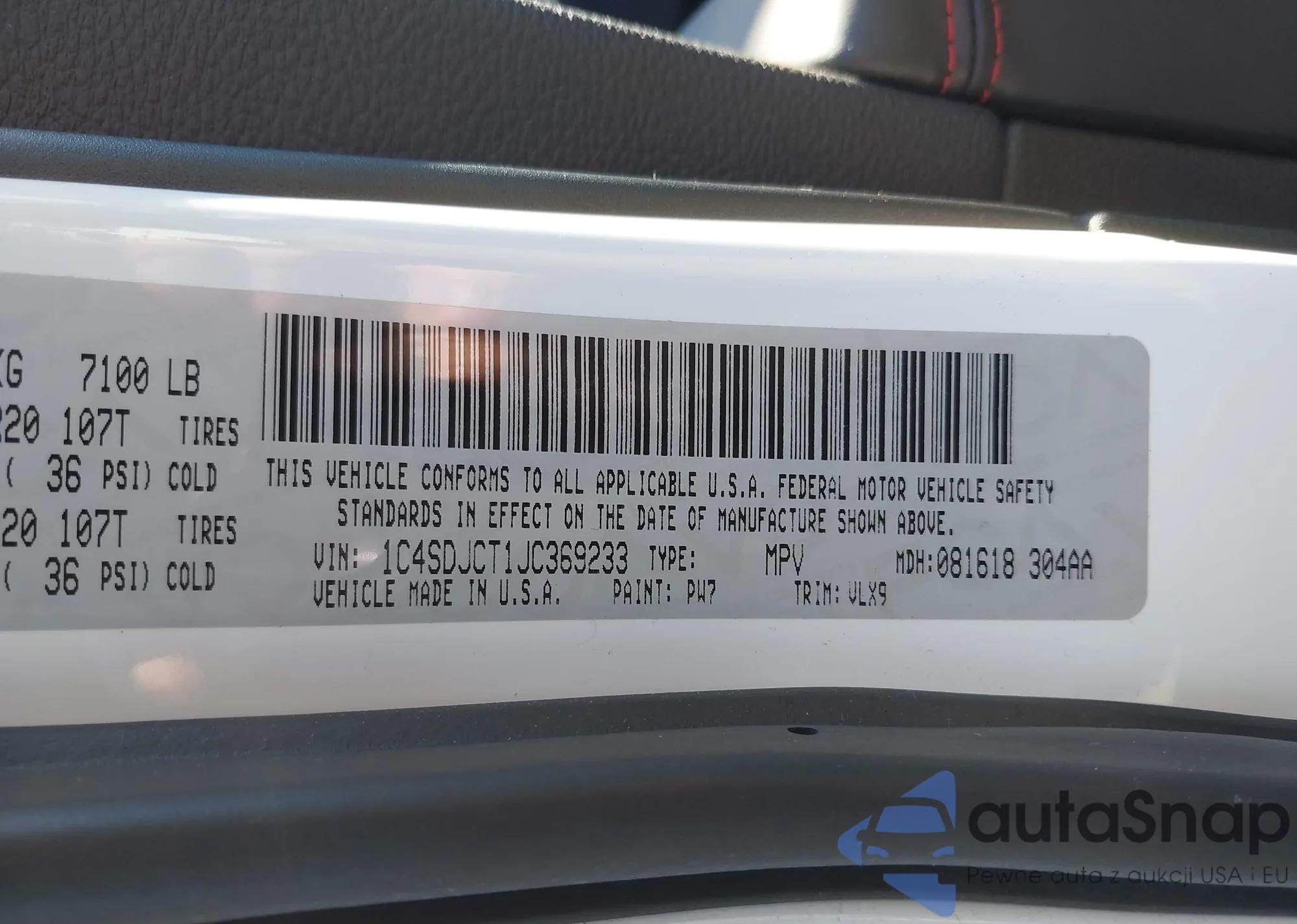 LOT: 44586248 VIN: 1C4SDJCT1JC369233
