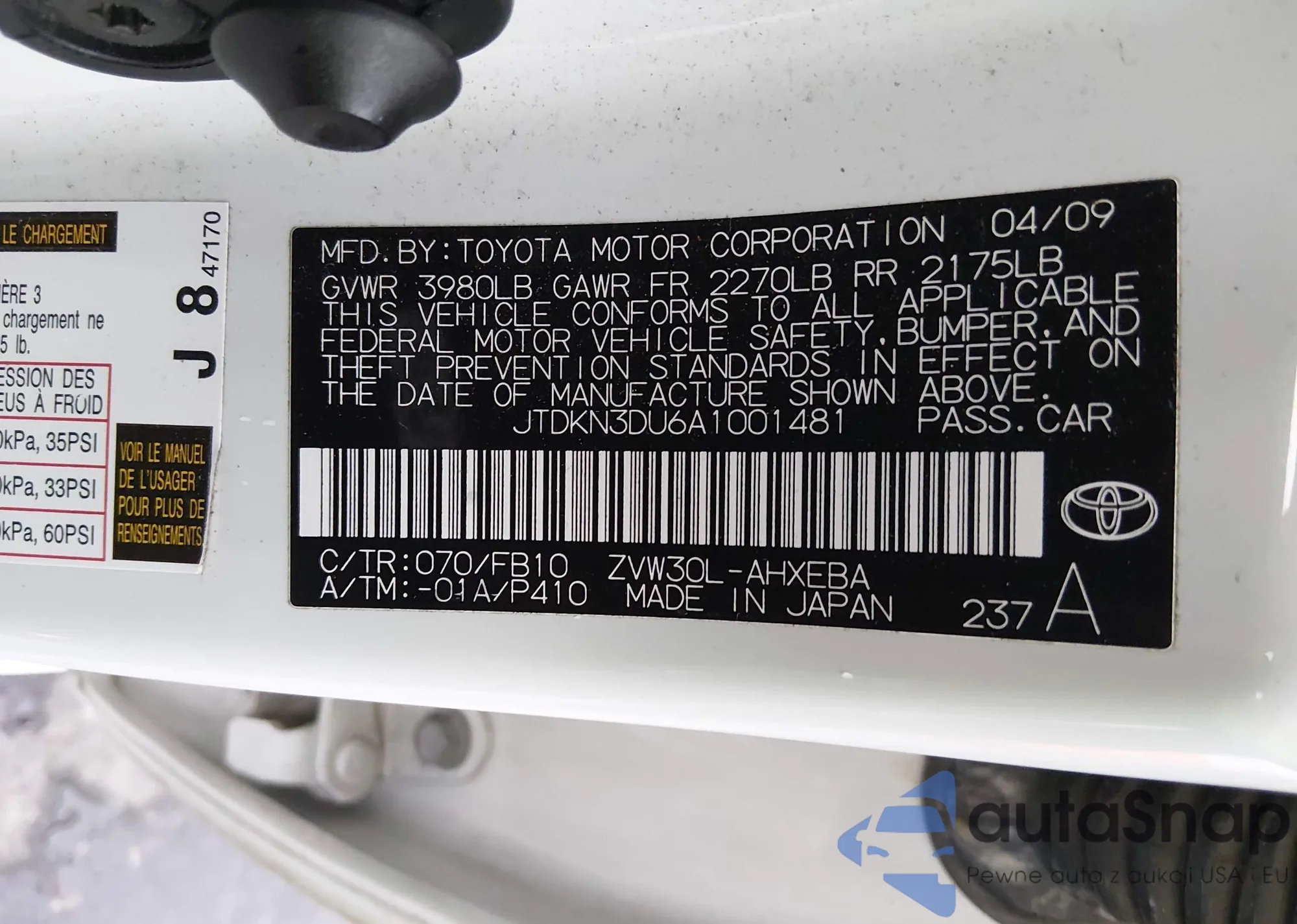 • VIN JTDKN3DU6A1001481