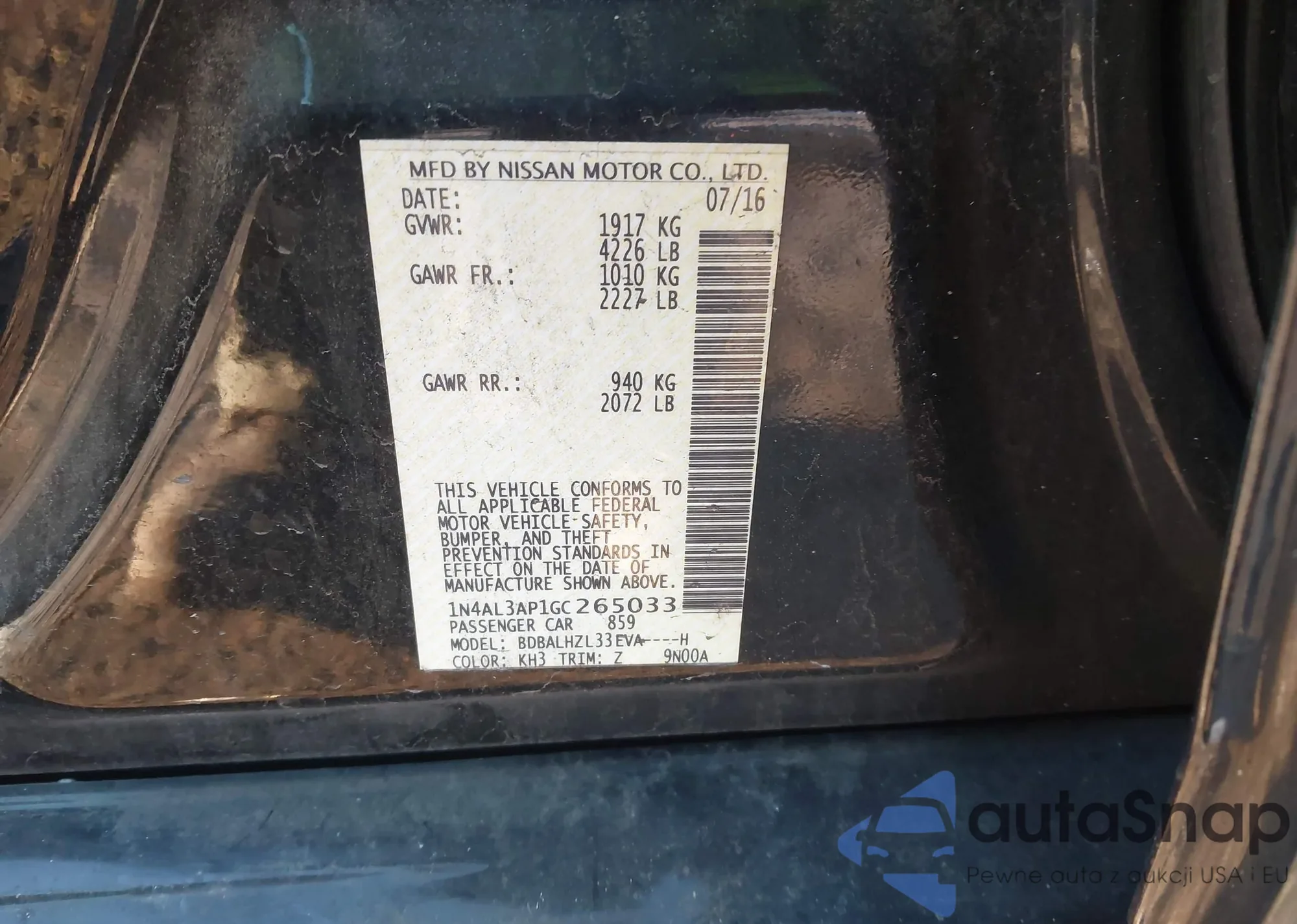 • VIN 1N4AL3AP1GC265033